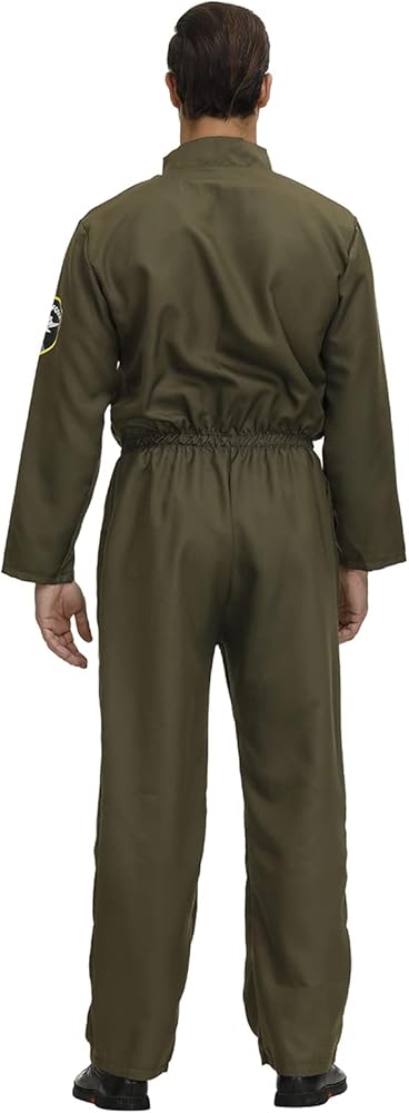 Green Jumpsuit Costume Features:This adult flight suit men coveralls zips up the front for an easy costume change,Features embroidered and sewn patches,Elasticated waist,Fits all body shapes.