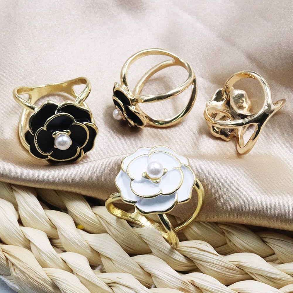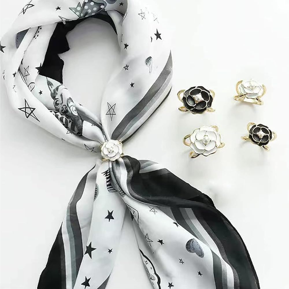 Four Pearl Floral Scarf Ring Clip,two colors and two sizes Camellia Flower Scarf Buckle,Make your silk scarves & belts more delicate.