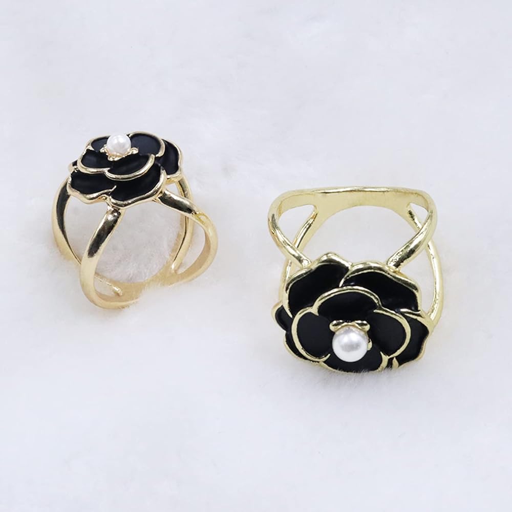 Women's Elegant Camellia Flower Scarf Buckle,Pearl Floral Scarf Ring Clip, Scarf Ring Buckle Women Fashion Metal Shawl Clip Buckle Lady Girls Decoration Accessories