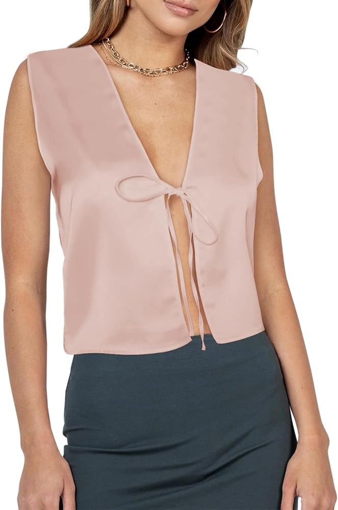 Feature: Sexy and stylish self tie front, with flattering V-neckline for a flirty and feminine look. Minimal design and these Y2K-inspired crop tops are a must-have addition to your summer wardrobe.
