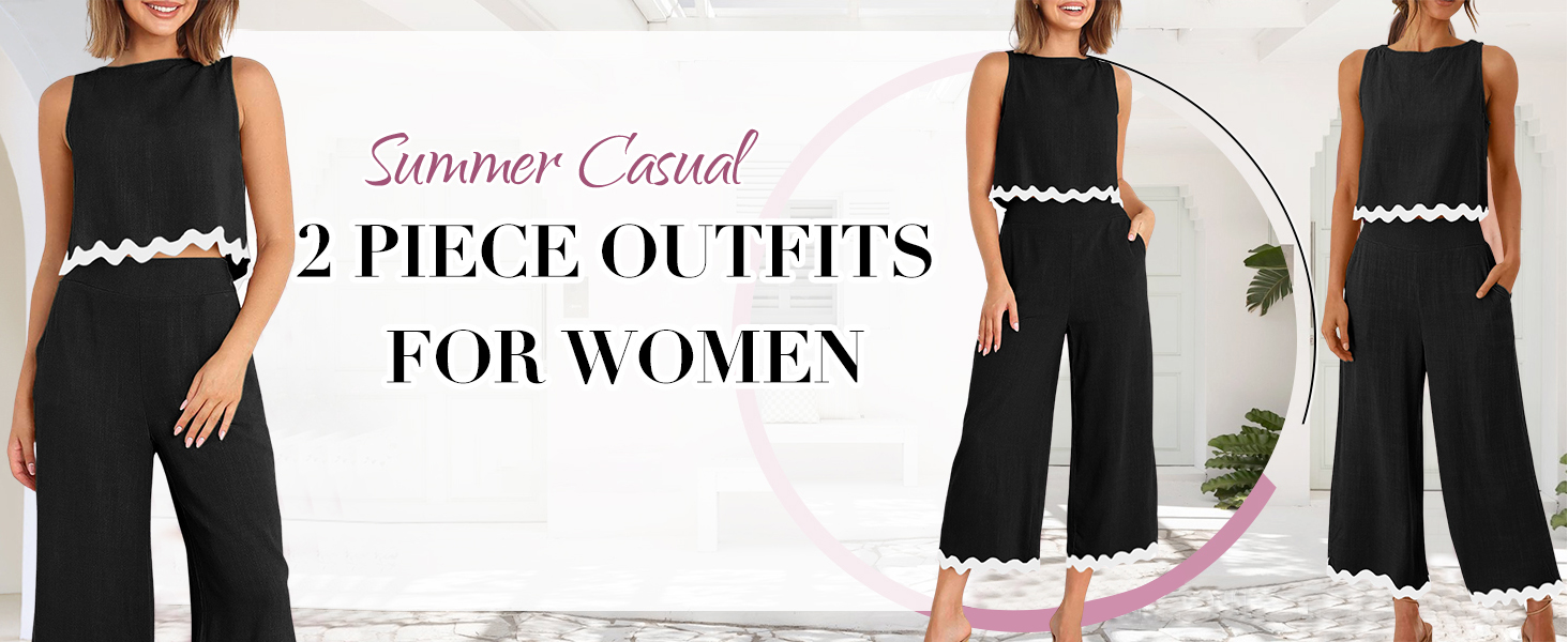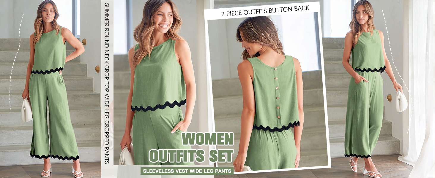 Design: This sleeveless round neck crop top and matching high-waisted loose athletic pants set, perfect for your summer workout routine or as casual wear. This two piece lounge set women features embellished with wave stripe detail and button back, it will make you stand out from the crowd.