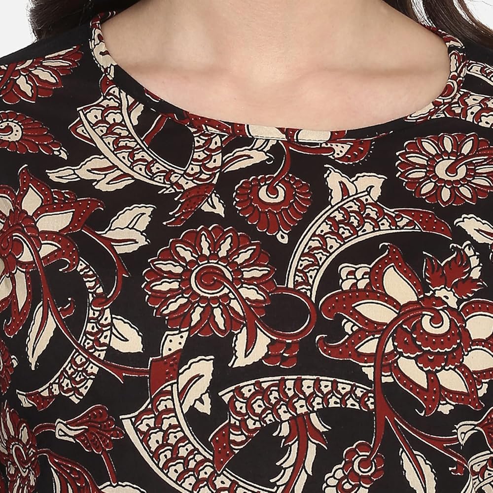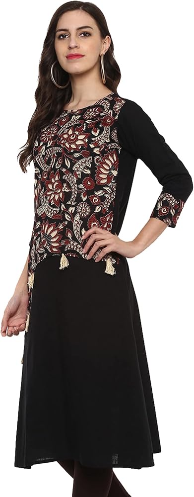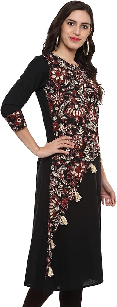This Kalamkari printed A-line Kurta by Yash Gallery is crafted in Cotton Slub fabric and features Three-Forth sleeves and Round. this Kurti as casual wear or you can carry a dupatta with this. This Kurti is easily wearable in the office. This is A-line Kurta in the style which gives you a gorgeous look. This Kurti is available in all sizes like XS to 5XL. You can customize the size of the Kurti according to your measurement. It can be paired with trendy jewellery like jhumkas and choker accessories.