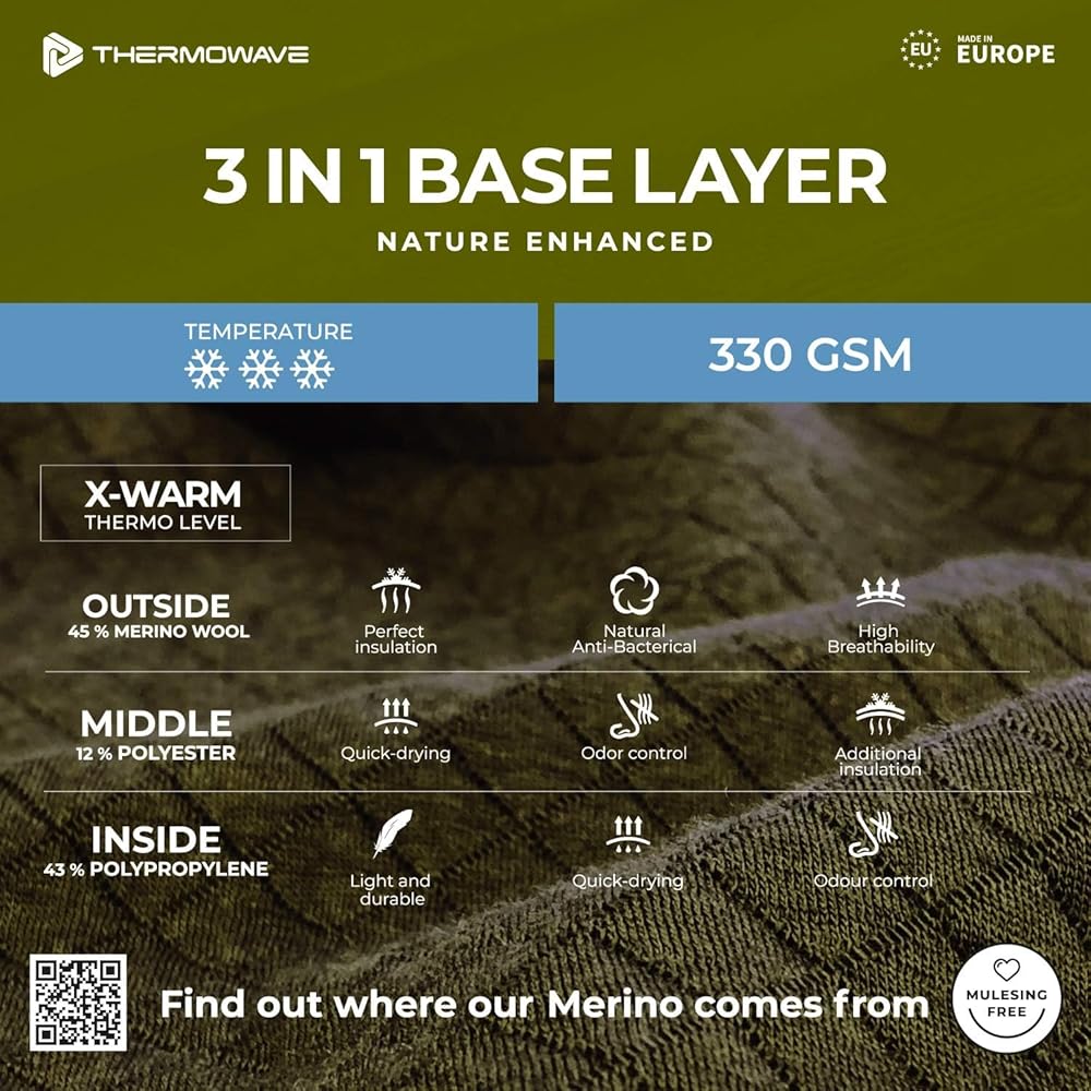 PREMIUM MERINO WOOL SHIRT. The quality of your baselayer mens Merino shirt matters, just like the origin of the wool itself. Made in Europe, Thermowave Merino 3in1 uses premium class Merino wool sourced from farms in New Zealand, the best wool we have tried.