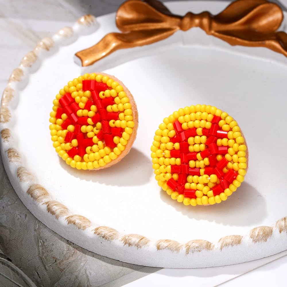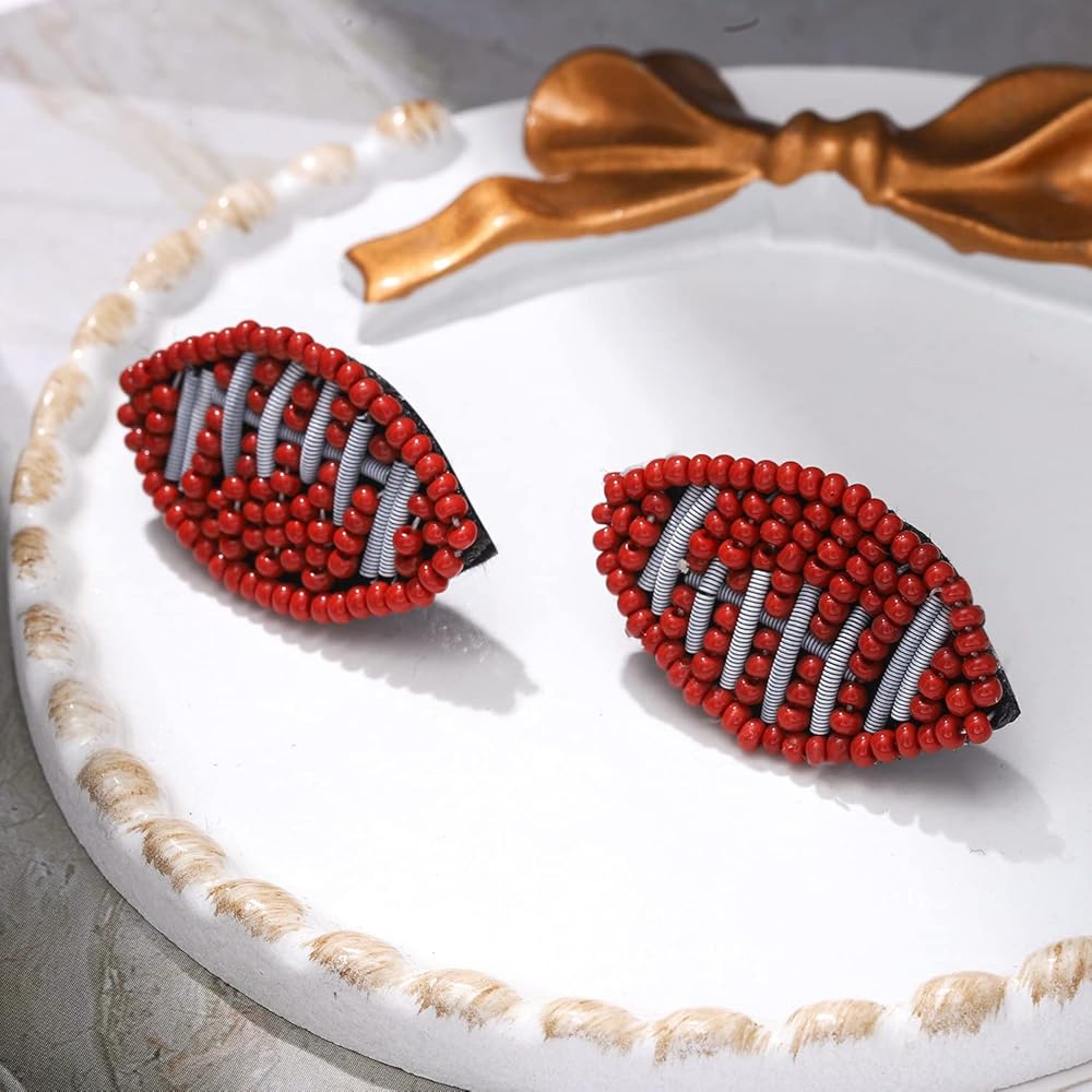 5 Pairs Beaded Earrings Baseball Earrings for Women Softball Football Sports Earrings Handmade Bead Stud Earrings Party Game Jewelry Gift