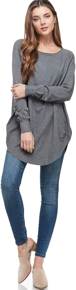 OVERSIZED LOOSE BOYFRIEND FIT SWEATER: The oversized silhouette hides any kind of midsection flaws. With the large size there is a lot of flowing fabric that allows to look slim and somfortable. The fabric is also very forgiving with a rounded bottom hemline that is longer in the fornt and back with the sides being higher, this also hides the backside, which makes this optimal for leggings or shorts as well!