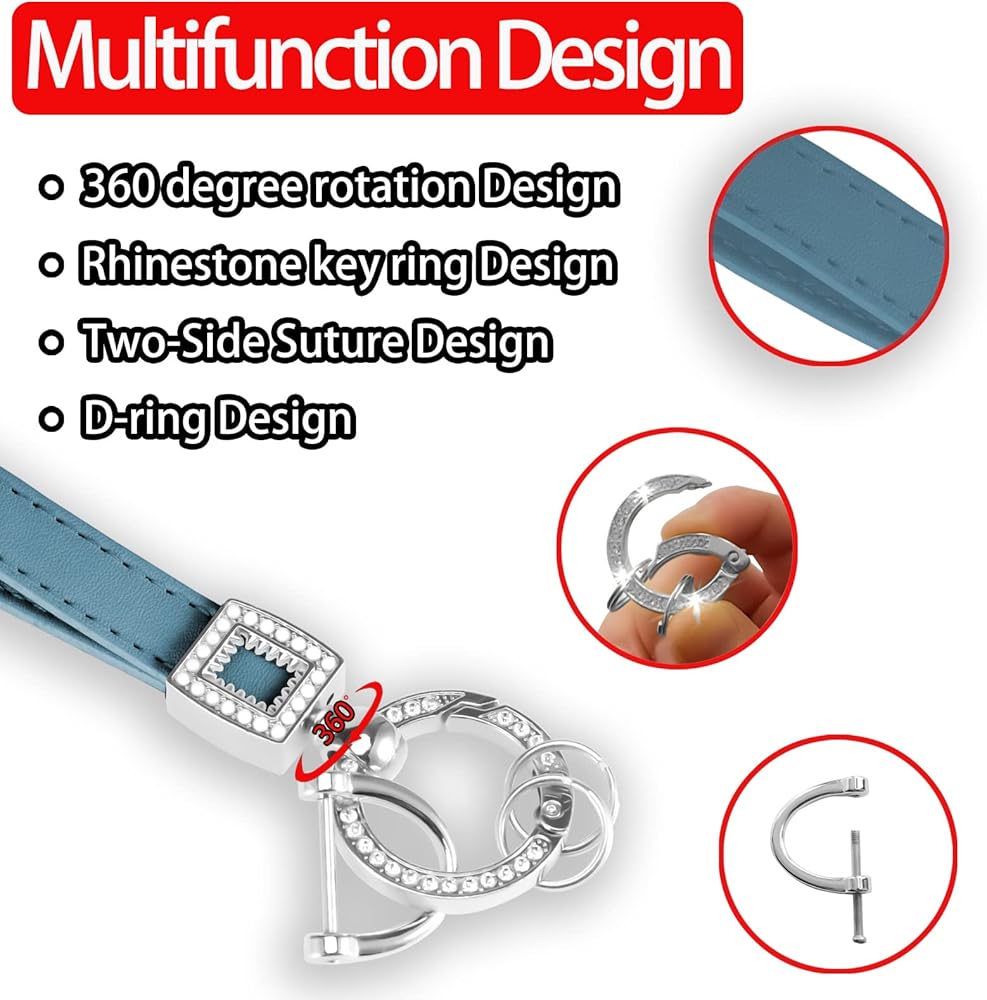 🔑【Multifunction Design】🚗:This Designer Rhinestone car accessories equipped with a D-ring and a diamond-encrusted circle ring keychain, D-ring buckle can be used for most car keys, such as BMW,VW, Subaru, Hyundai, Benz, Cadillac, GMC, Toyota, Honda, Ford, etc. It can also be used for daily key managementeasily.