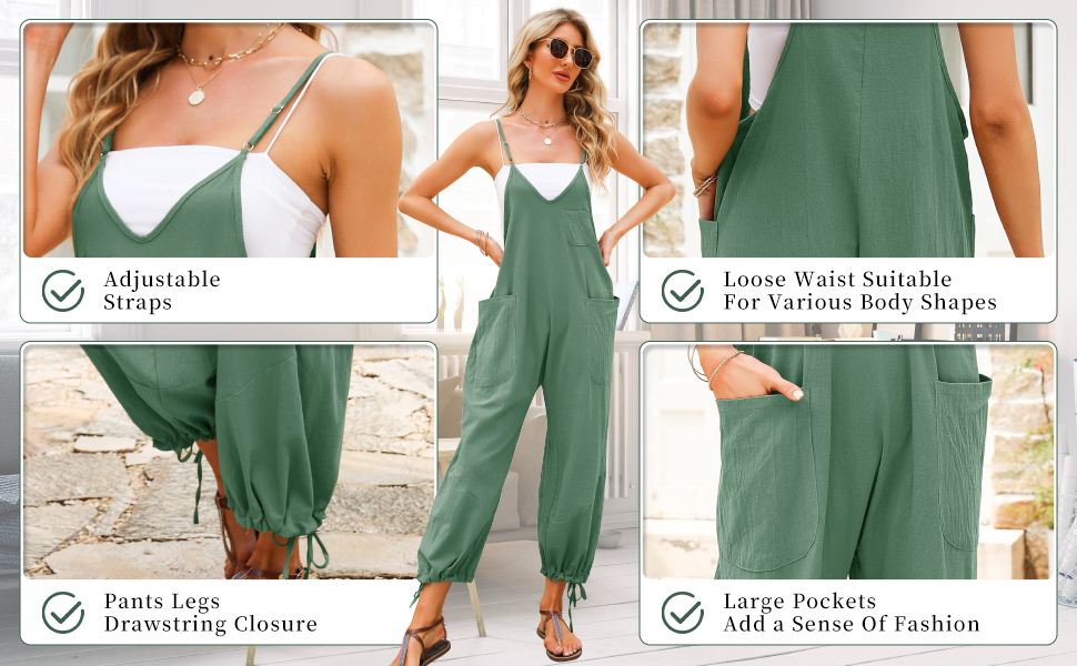 Comfort: Casual cotton and linen overalls are made of cotton and linen blended fabric, which is very comfortable and breathable, soft and comfortable to the touch, strong and durable. Wearing clothes made of this fabric, you will feel very relaxed, cool and comfortable.