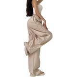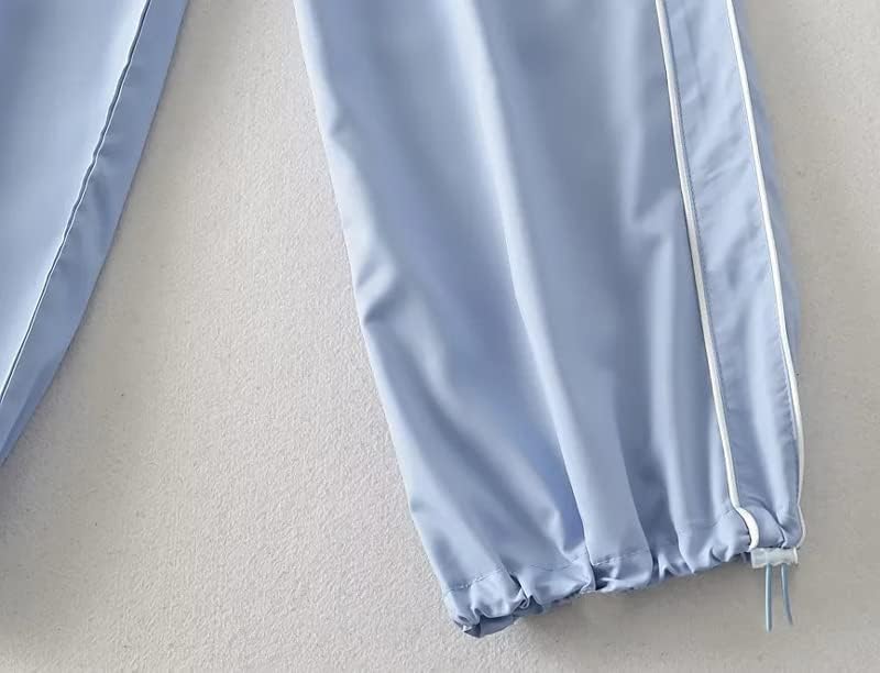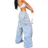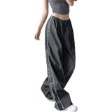 Drawstring closure parachute pants with handy side pockets, loose fitting, cinch bottom trendy track pants, elastic high waisted cargo pants.