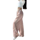 100% Polyester. This baggy y2k track pants using premium fabric, lightweight and breathable.
