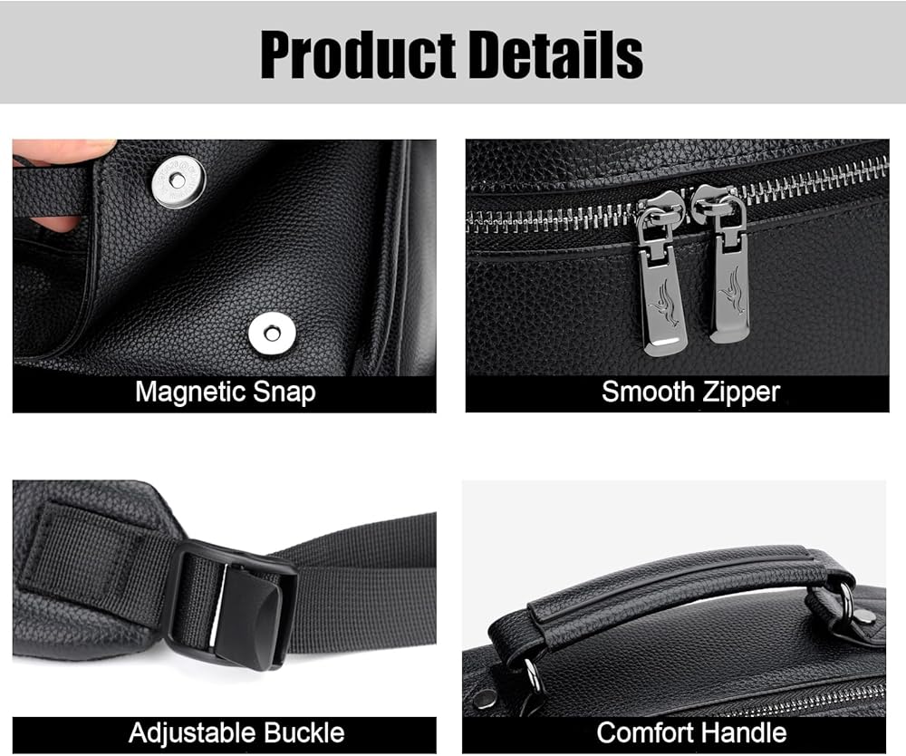 Mulit Pockets & Function:This leather backpack for men has 1 Main Bag, 1 Computer Compartment Bag,1 zip pocket inside,1 flap top pocket,1 front zipper pocket and 2 side pockets.