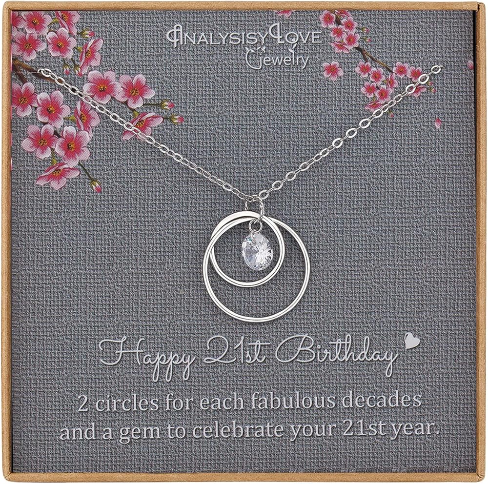 Perfect Gift for Women: The delicate necklace for two circles, one to represent each magical decade of life, Commemorate 21 fabulous years milestone birthday with two silver circles and cubic zirconia. Great for daughter, granddaughter, niece, sister, girlfriend and best friend. Let her know you'll love her forever.