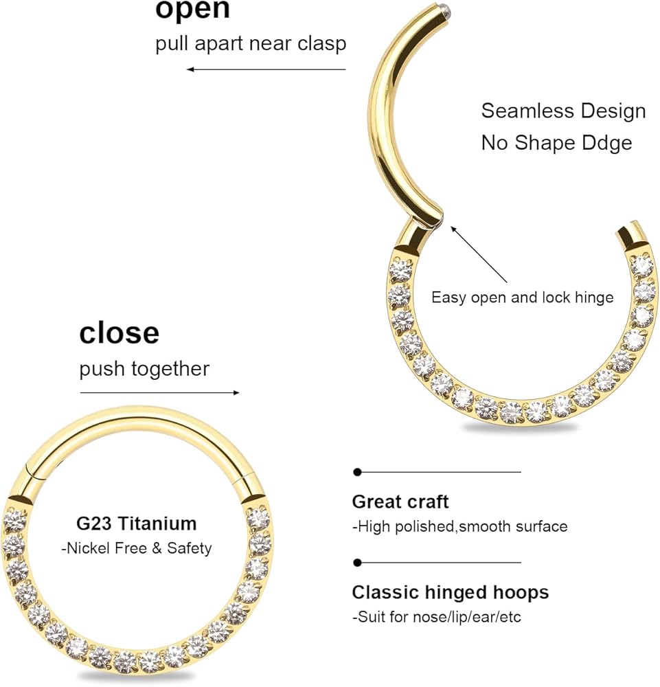 Can Be Used as: nose rings hoop, helix earrings, cartilage earrings, rook piercing jewelry, conch earrings, tragus earring, daith earrings, lip rings, septum rings.