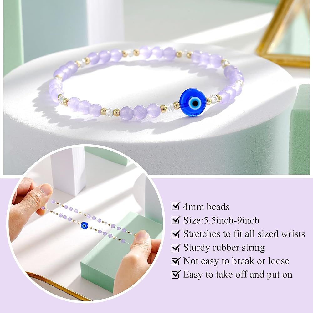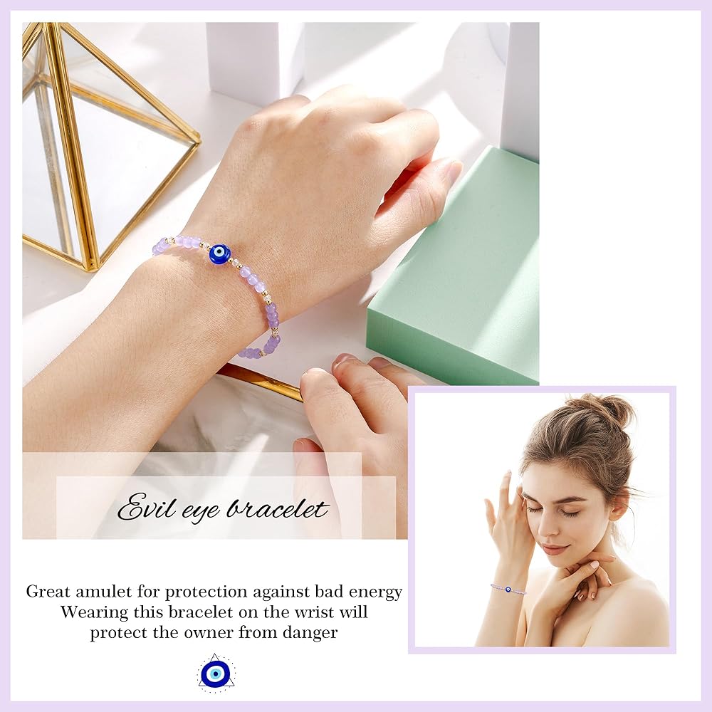 Elegant Bracelet for You:This bracelet is made of natural crystal stone with a evil eye charm,which makes the wrists simple bracelet more delicate dazzling charm.