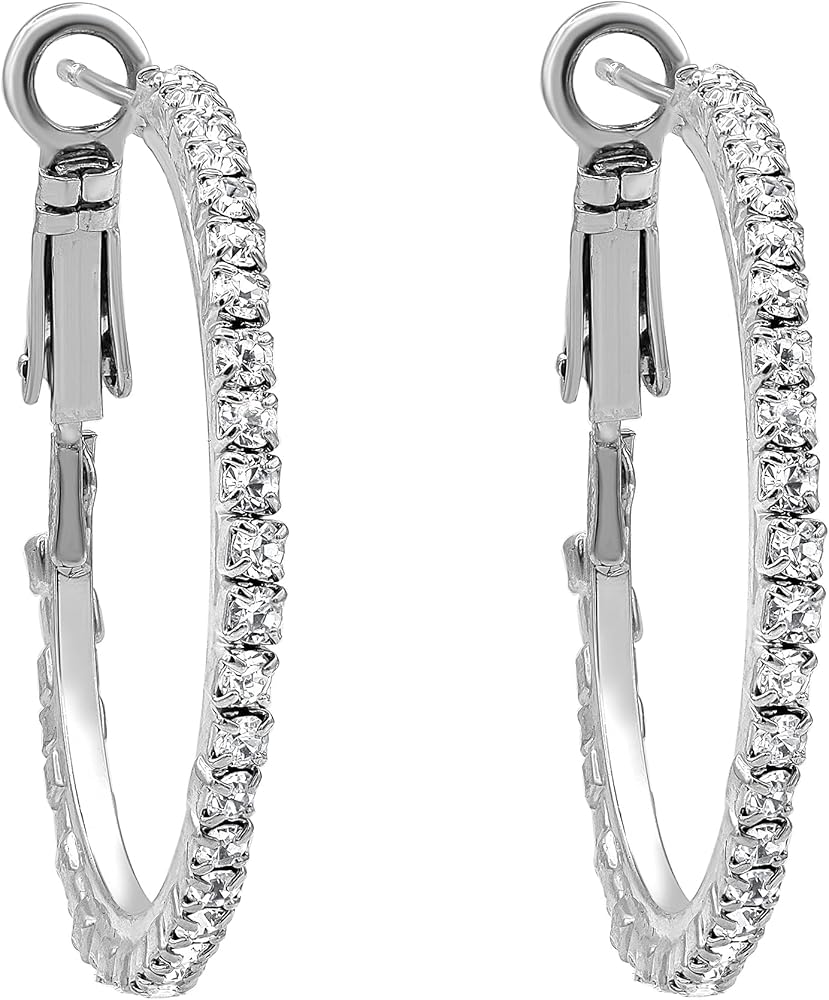 STERLING SILVER HOOP EARRINGS: Unique and elegant, these gorgeous rhodium plated sterling silver hoop earrings are made of sterling silver with a radiant, high polish finish. Lined with dazzling, round cut cubic zirconia in a prong setting, these stylish accessories are an impressive complement to any ensemble. Polished gorgeous real & natural rhodium plated accent hoop earring creates glamorous reflections & adds luxurious look.