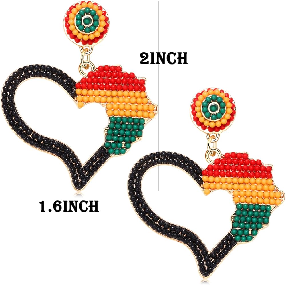 African Earrings Crystal Beaded Afro Dangle Earrings for Black Women Head Africa Map Heart Dangle Earrings for Women Ethic Juneteenth Inspired Earrings Jewelry Gift