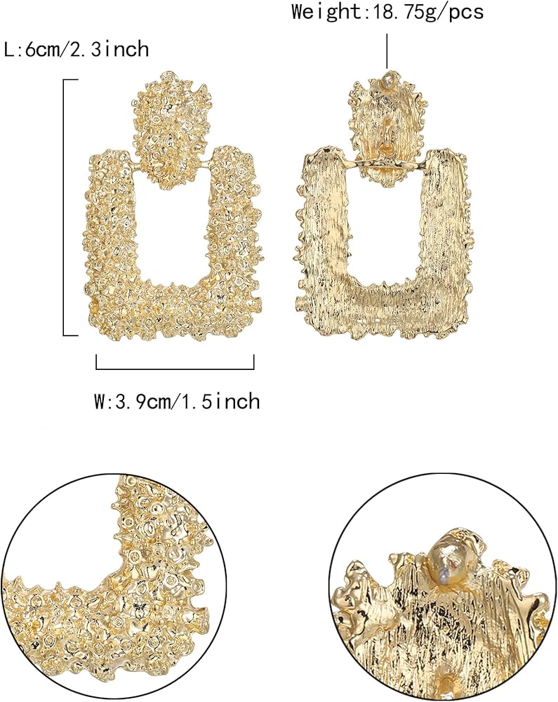 ❤️【Size】: Length: 6cm(2.3"), Width: 3.9cm(1.5"), Each Earring Weight: 18.75g.