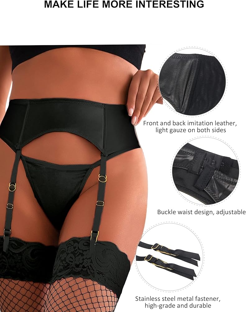 【4 Metal Clips】: The high waist garter belt with Stainless steel metal fastener, high-grade and durable.