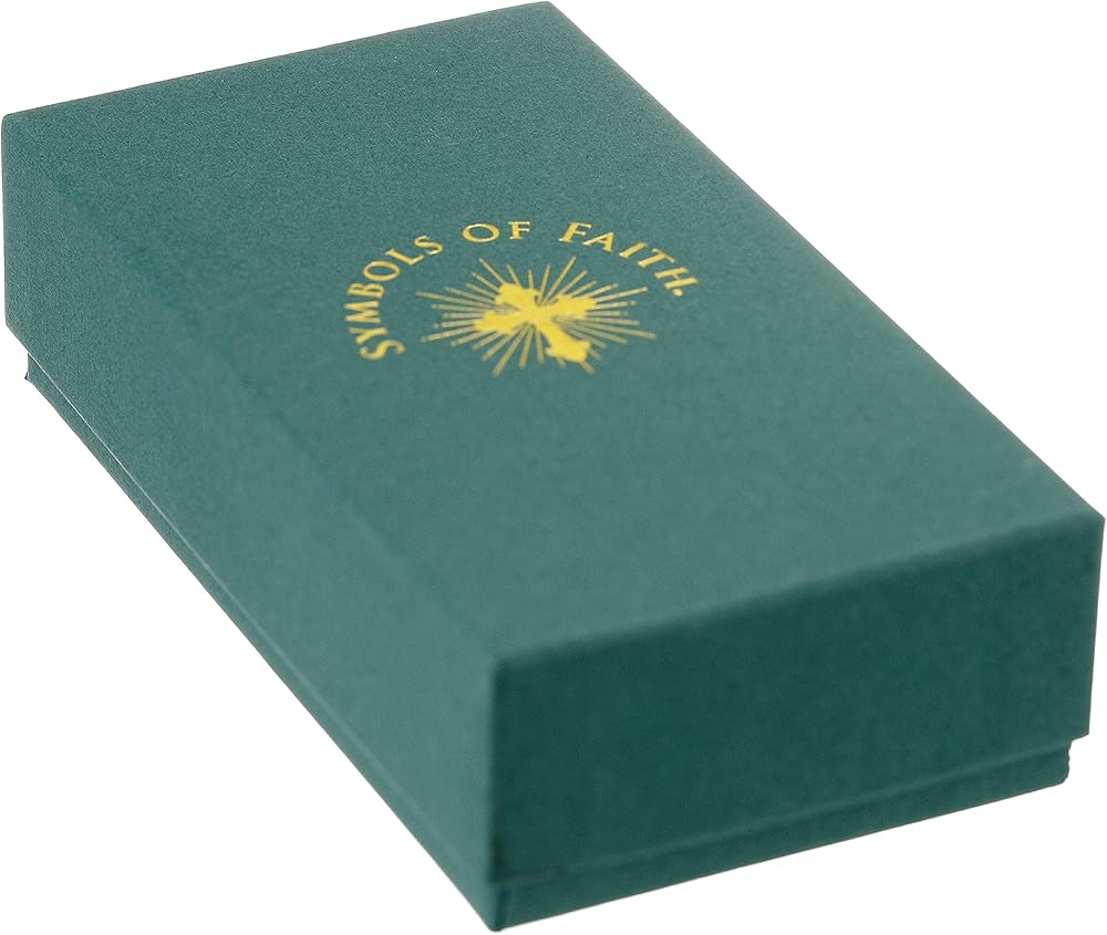 Comes in a gift box. Symbols of Faith Mary and Child pendant. Inside is an enclosure with four crystals adjacent to four roses linked through thorns. Inspired by Raphael's Madonna del Granduca.