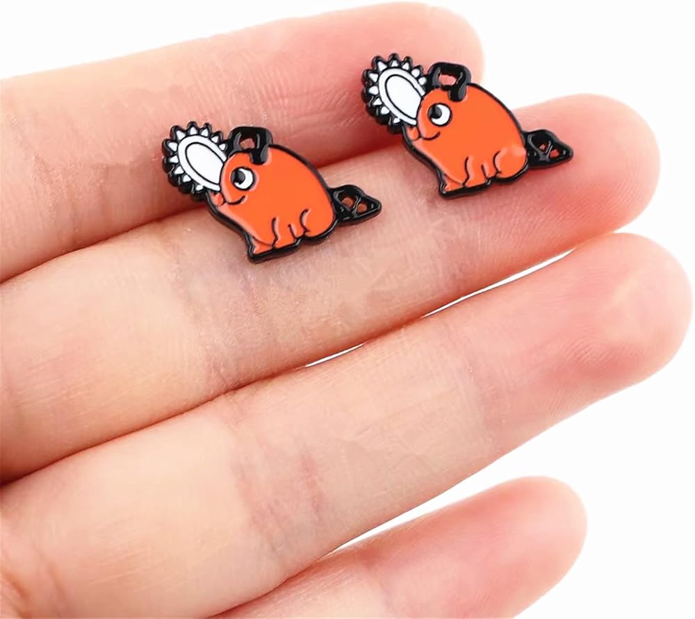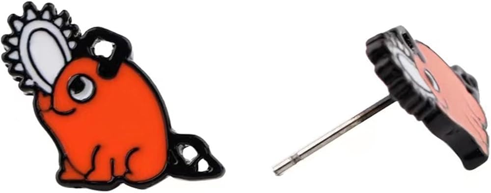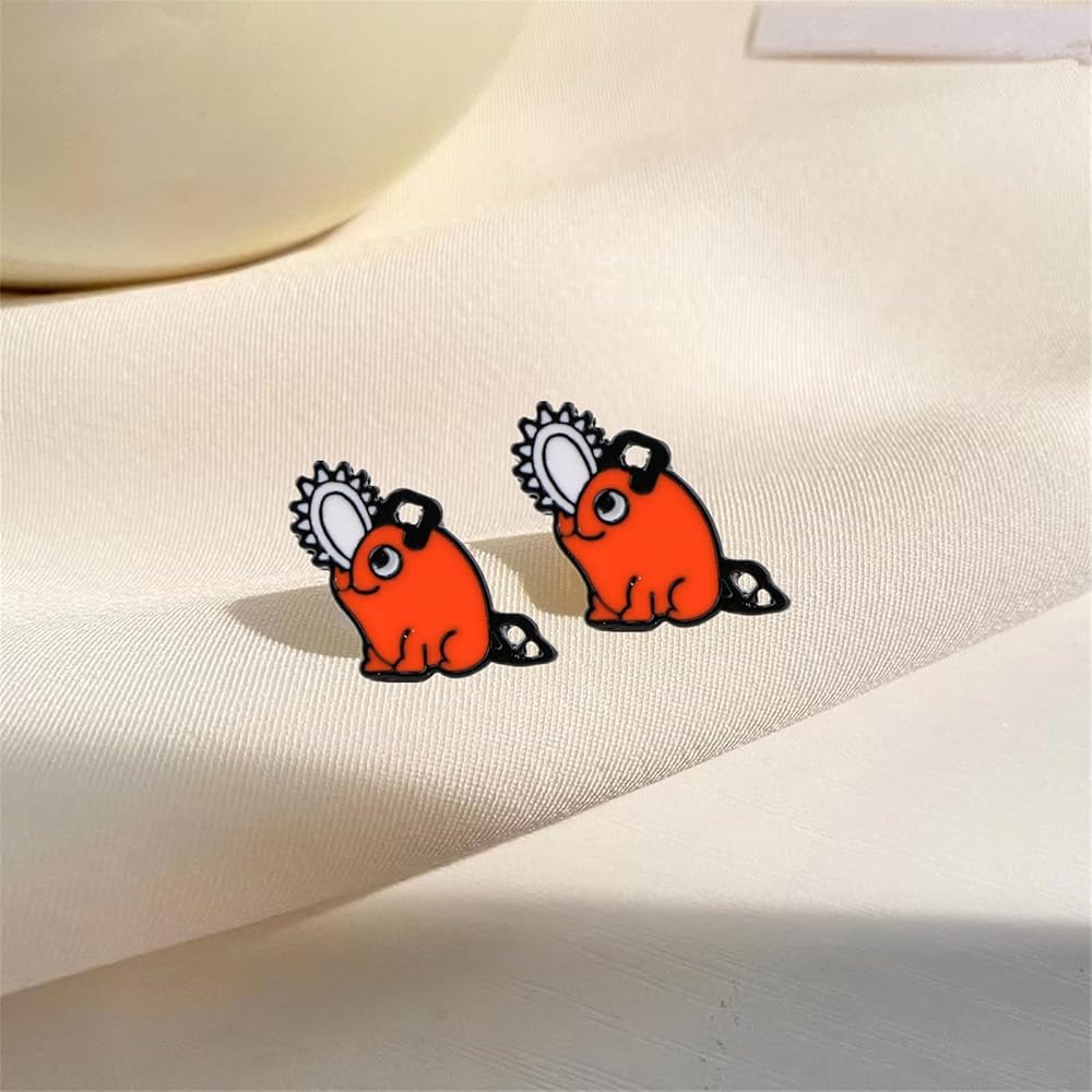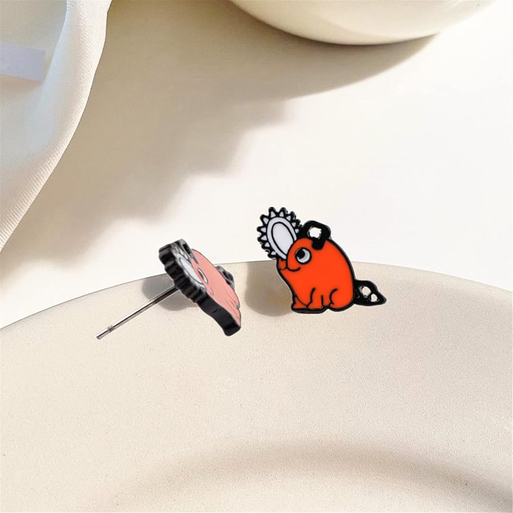1Pair Halloween Pochit Chainsw Mn Earring Stud, Horror Zinc Alloy Stud Earrings for Women and Men (1)