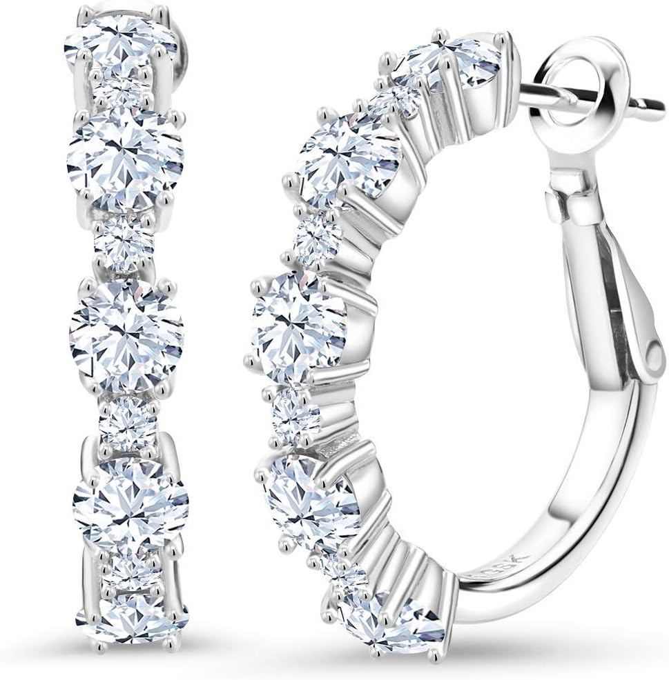 Brilliant Moissanite Gemstones: These hoop earrings feature white moissanite gemstones, which are renowned for their exceptional brilliance and fire. The moissanite stones in these earrings have a total carat weight of 2.60 Cttw.