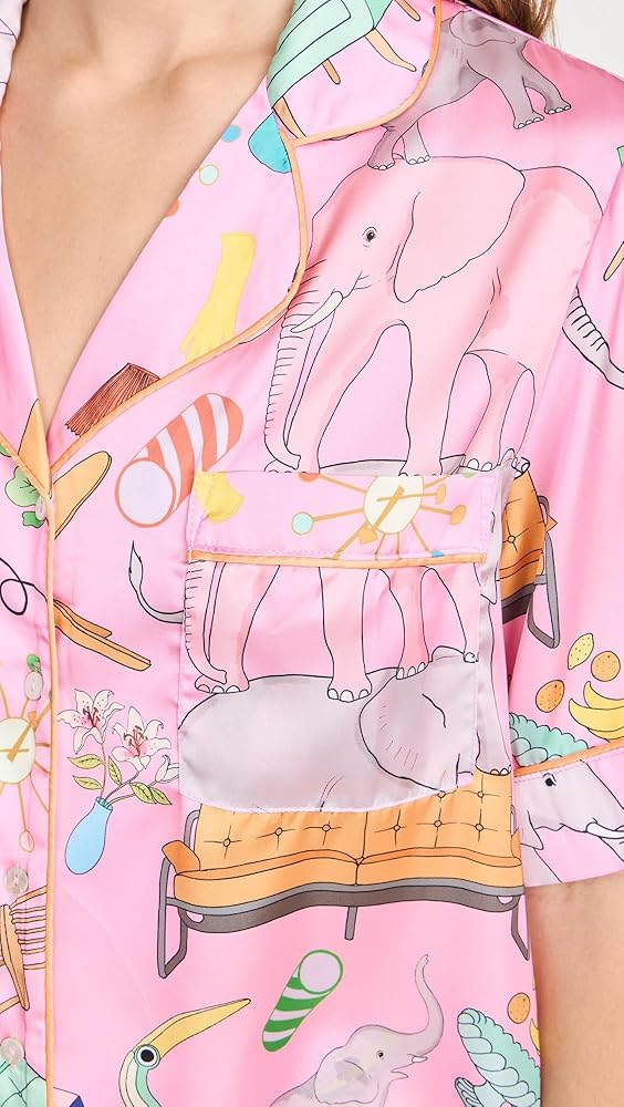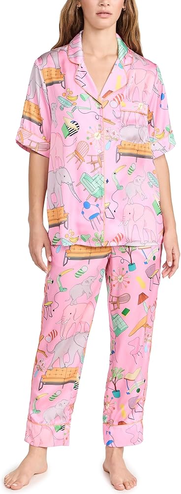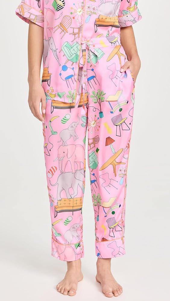 Karen Mabon Women's Elephant in the Room Short Sleeve, Long Trousers PJ Set