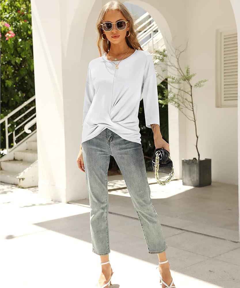 Features: Round neck, three-quarter sleeves, solid color, slim style, stylish front twist design, perfectly show your beautiful body curve, if you walk in the crowd, you will surely receive praise from everyone