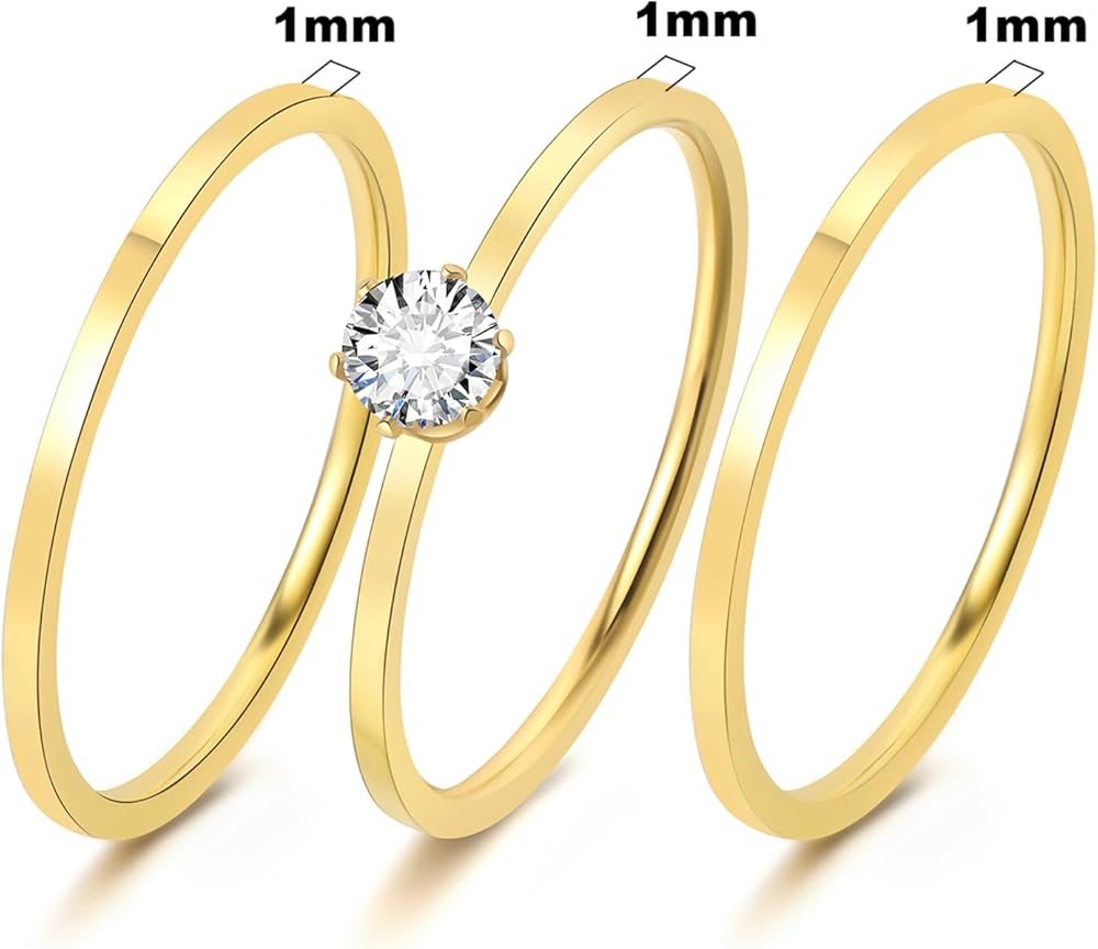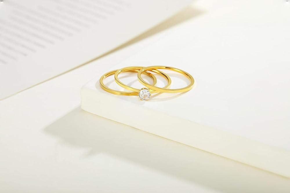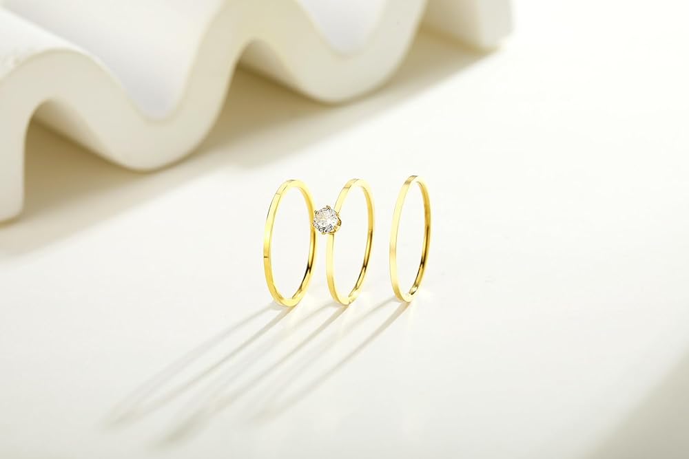 🍓 Unique Design 🍓This stackable ring set including two bands and 1pcs CZ solitaire ring with 1mm width,making it a perfect set to stack with your favorite rings or worn alone.