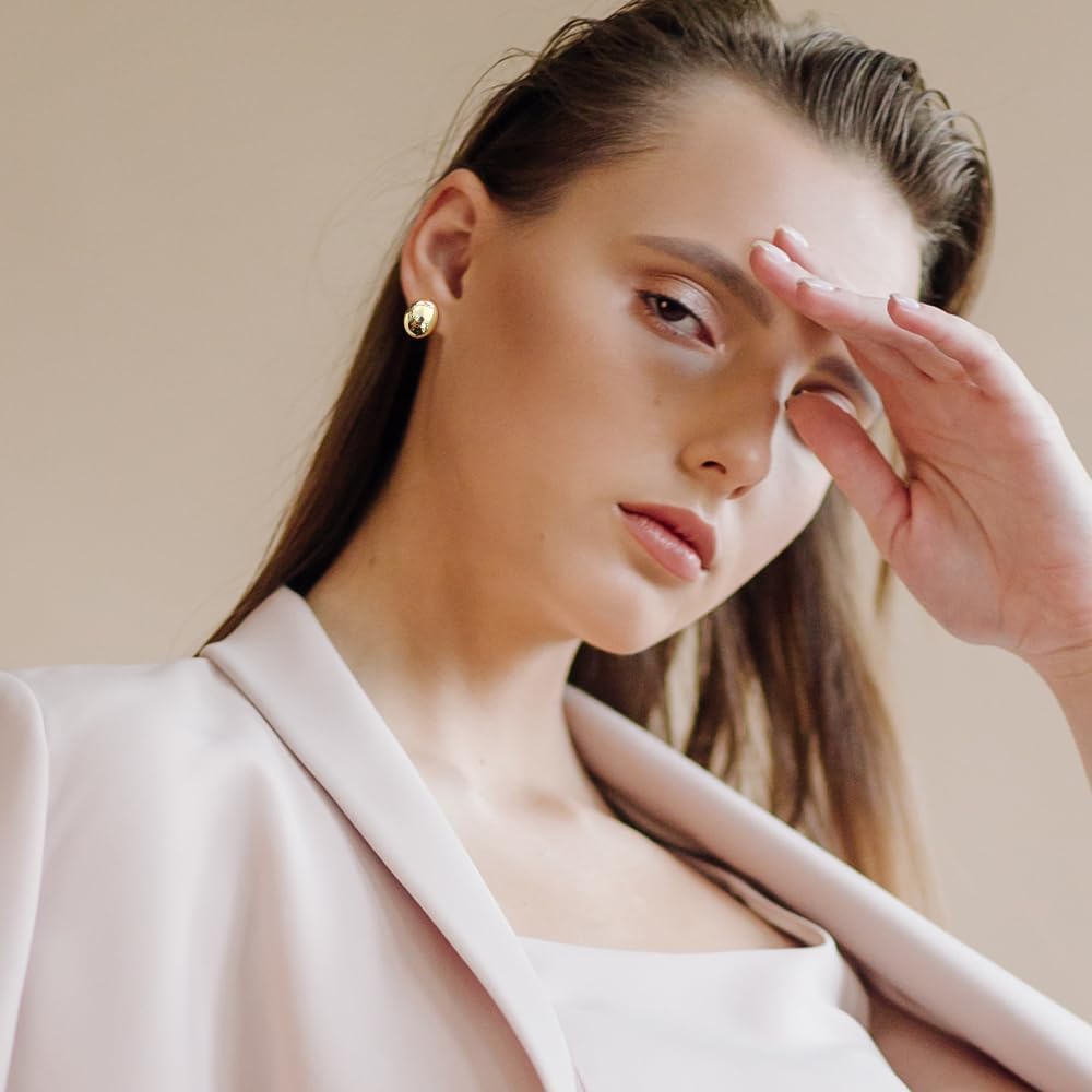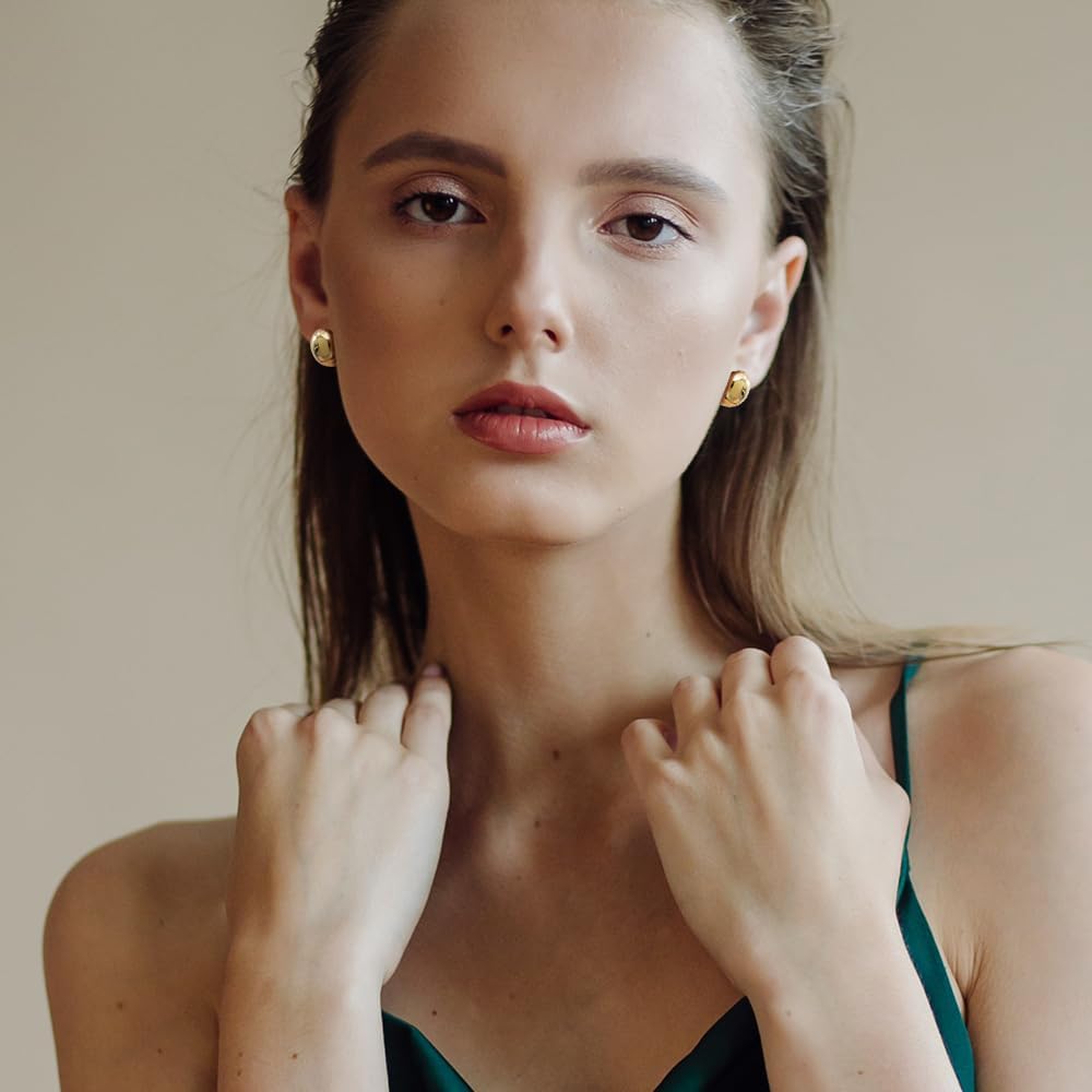 [Hypoallergenic Earrings] Premium brass and low sensitivity 14K gold plating, which makes a comfortable touch for people with sensitiver skin.