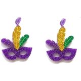 Colorful Mardi Gras Feather Mask Hat Shape Dangle Earrings Dainty Carnival Resin Acrylic Earrings for Women Girls Jewelry