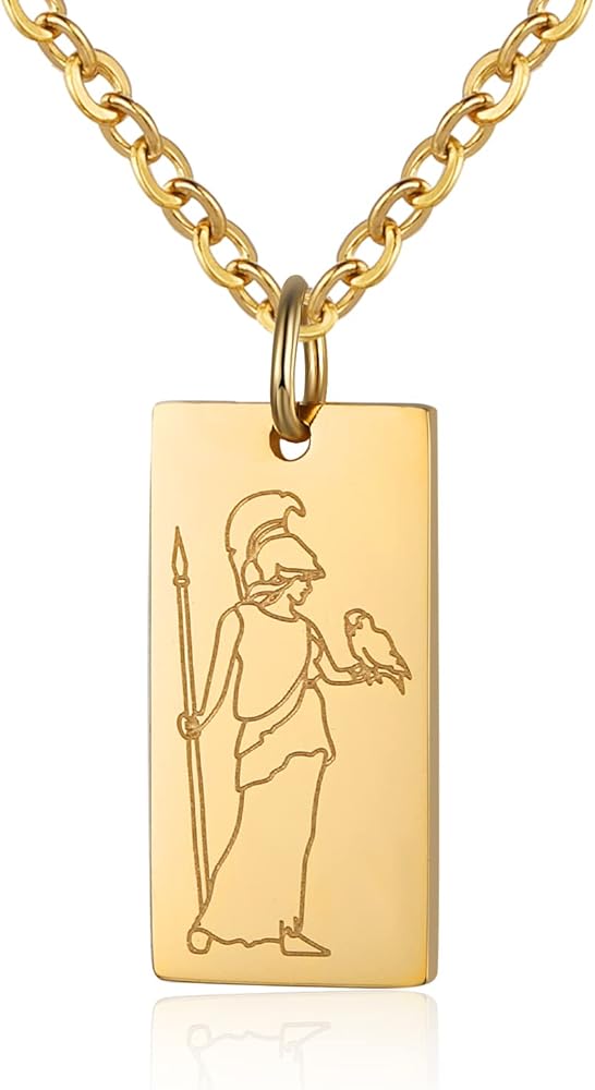 Susook Goddess Necklace for Women 18K Gold Plated Dainty Bar Pendant Stainless Steel Chain 20+2 inch Mythology Greek Jewelry Waterproof Non Tarnish Friendship Jewelry Gift for Girls