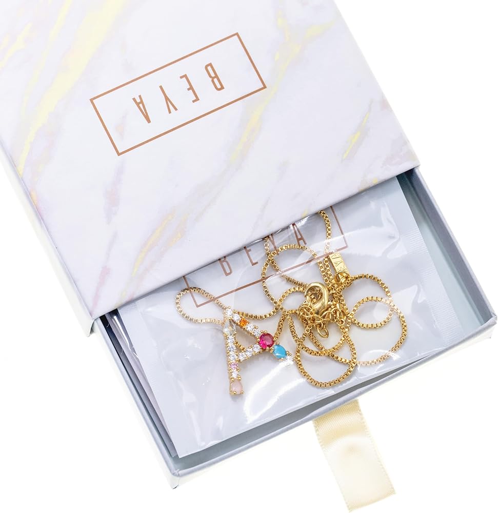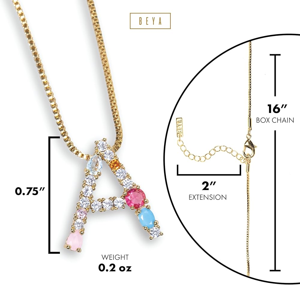 VIBRANT ELEGANCE: The Beya initials necklace is a dream come true for fashionistas who want to spice up their outfits. The pendant features vibrant, colorful cubic zirconia stones, with each stone being meticulously selected to ensure radiance, brilliance, and glamour.