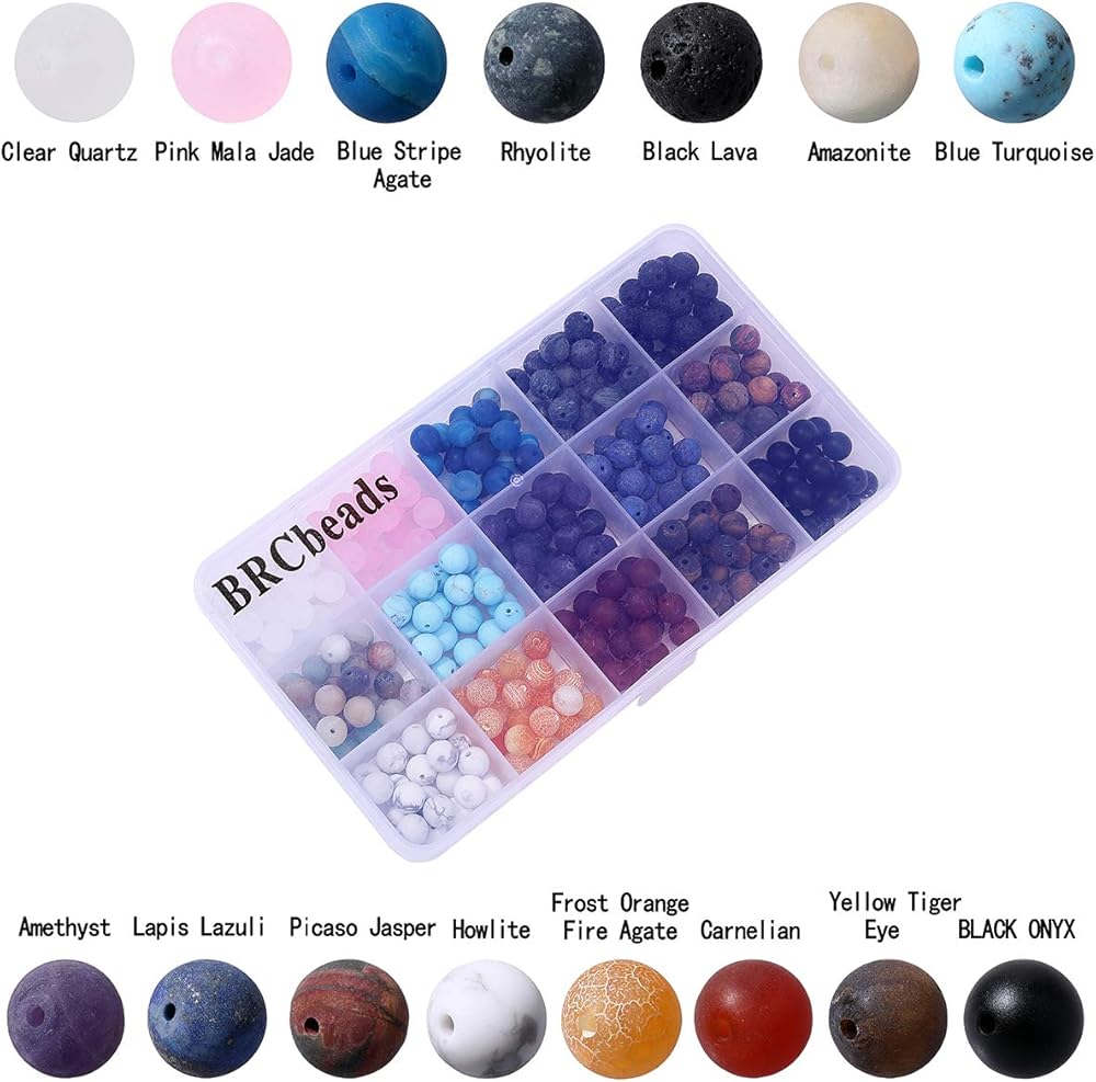 Gemstone beads, BRCbeads 8mm Matte Round 15 Color Assorted Box Set Onyx Amazonite Lapis Lava Crystal Energy Stone Healing Power Loose Beads for Jewelry Making
