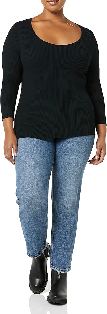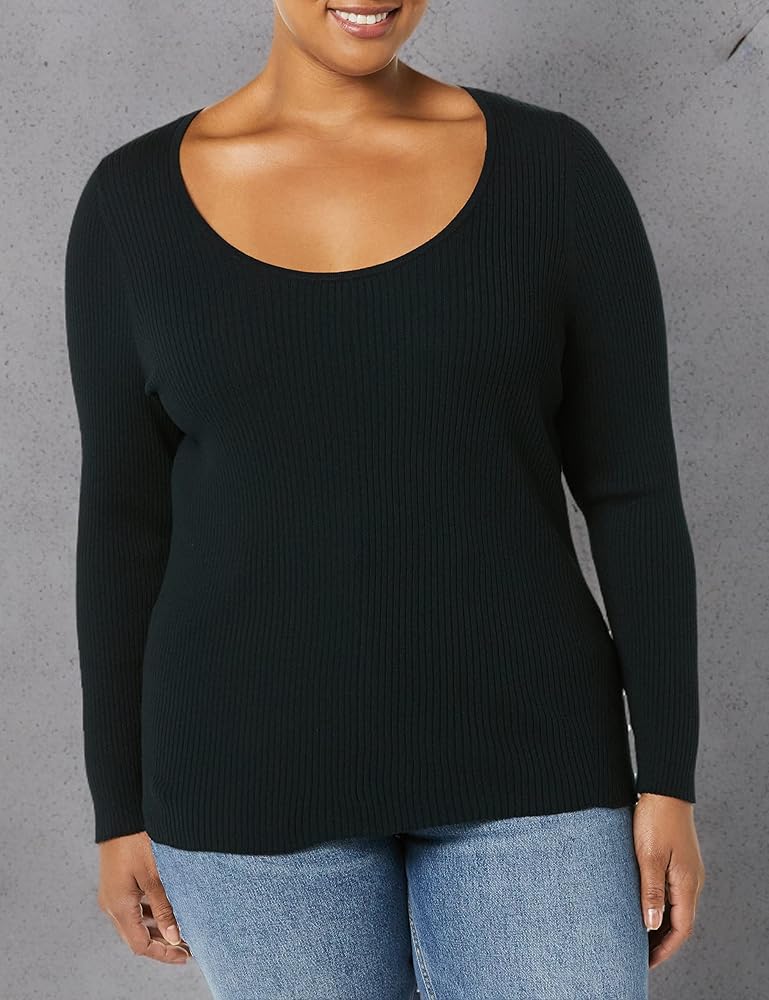 Amazon Essentials Women's Long-Sleeve Sweater Fine Gauge Stretch Scoop Neck, Available in Plus Sizes