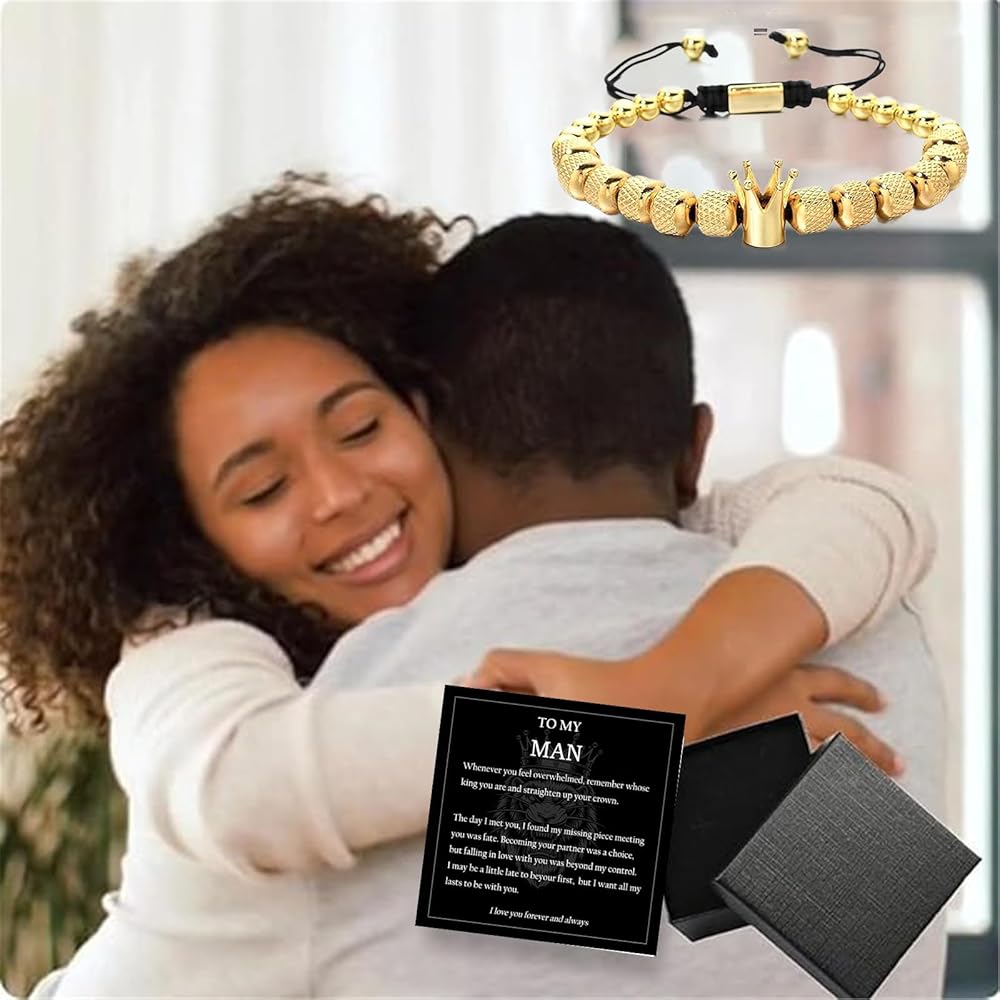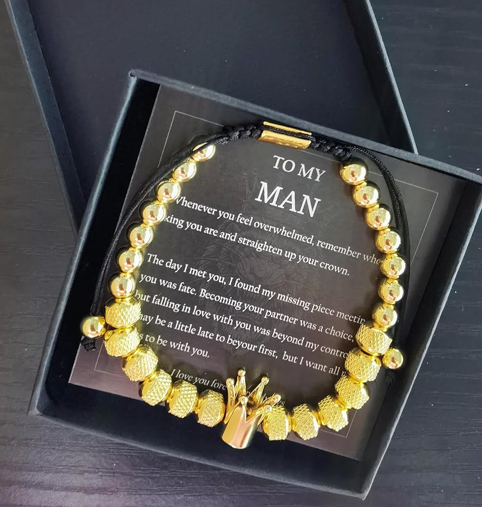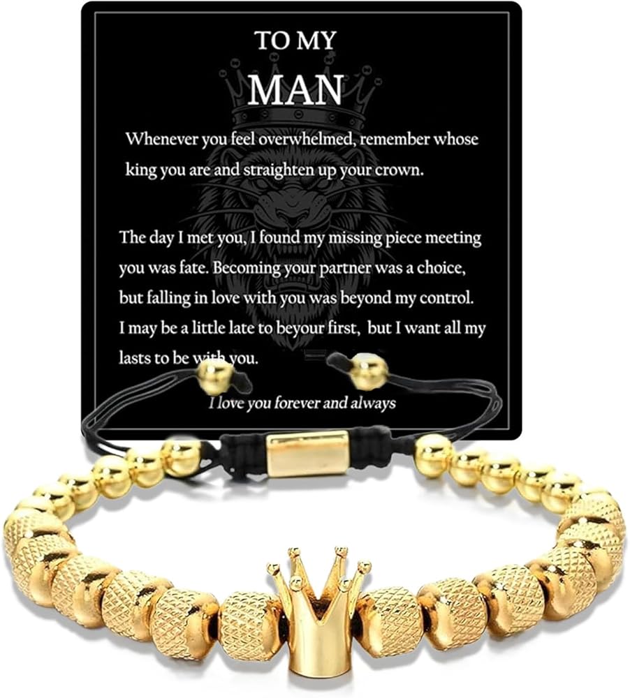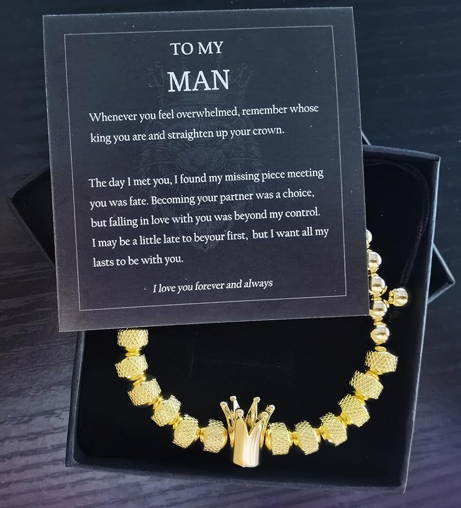 【To My Man Bracelet】: Whenever you feel overwhelmed, remember whose king you are and straighten up your crown. The day I met you, I found my missing piece meeting you was fate.Becoming your partner was a choice, but falling in love with you was beyond my control. I may be a little late to be your first, but I want all my lasts to be with you.