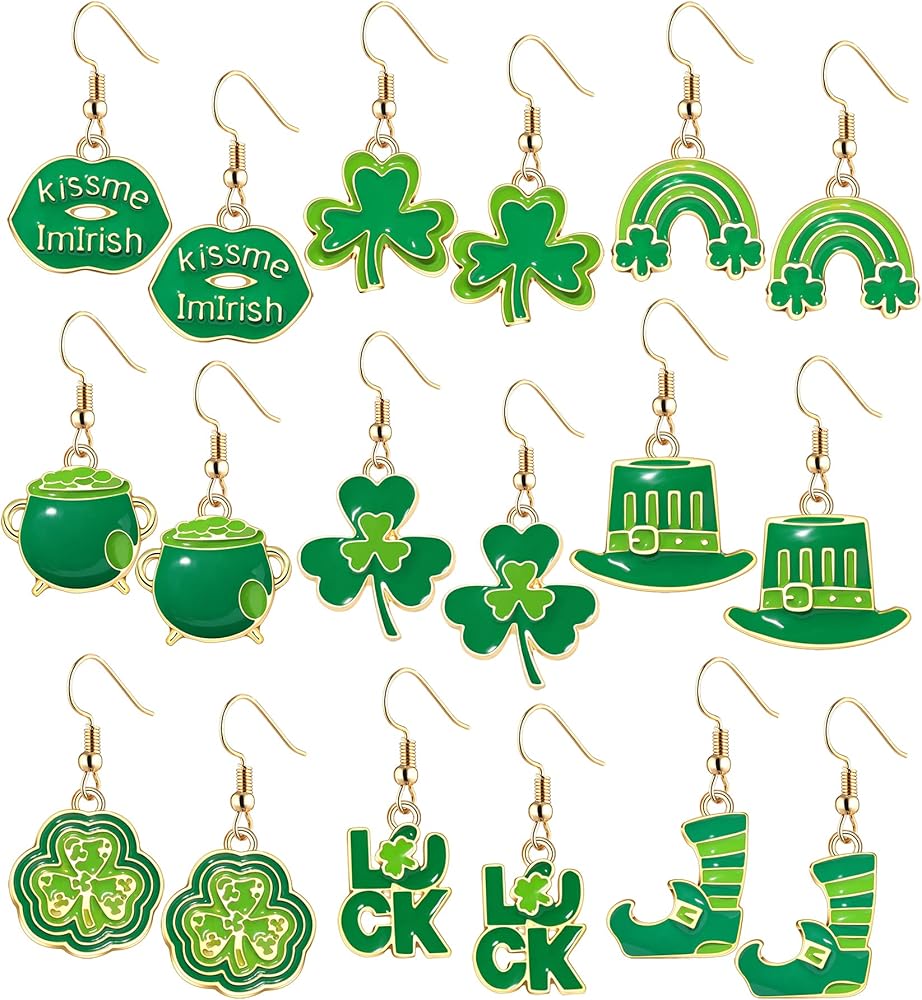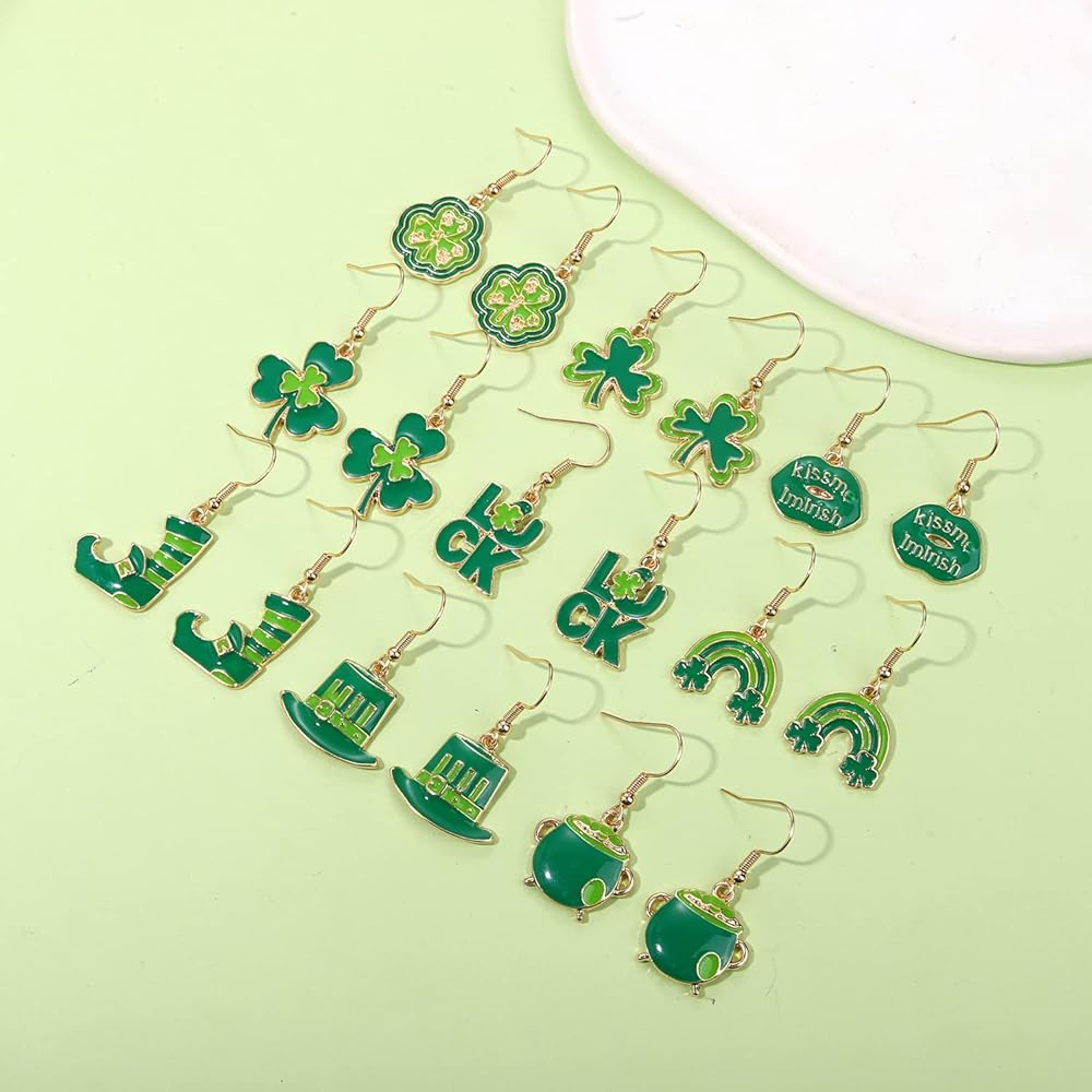 Symbols of Luck-- Get ready to wear green all over on St. Patrick's Day with these festive enamel green shamrock clover earrings pack. Symbols of luck couldn't come cuter than these Happy Kawaii Leaf Clover Shamrock Dangle Earrings! Pick up this pair of Dangling Statement Lucky Shamrock earrings to make your St. Paddy's Day outfit complete!