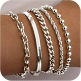 STYLISH BRACELET SET: You will receive 5 bracelets in individual styles. Our bracelets include Beaded Cuban Paperclip Satellite Mirror Chain beaded ball chain, paperclip chain, cuban chain, satellite chain and mirror chain. You can combine and match them as you wish.