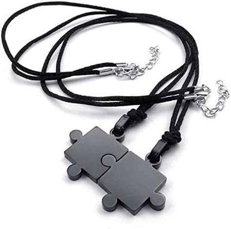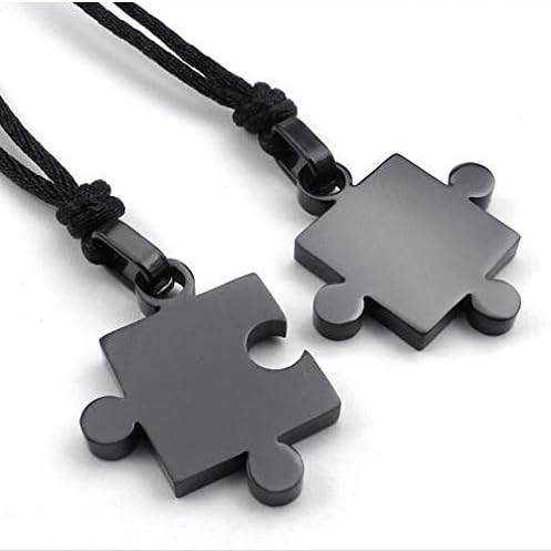 jonline24h Men Women's 2 PCS Stainless Steel Pendant Necklace Jigsaw Puzzle Love Couple Adjustable 22~24 Inch Chain