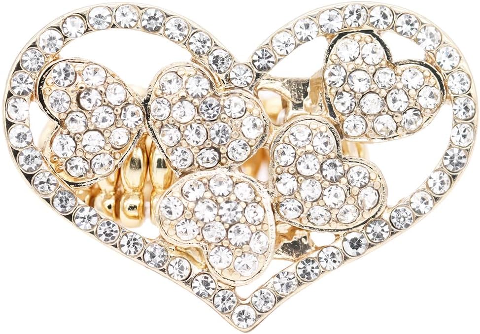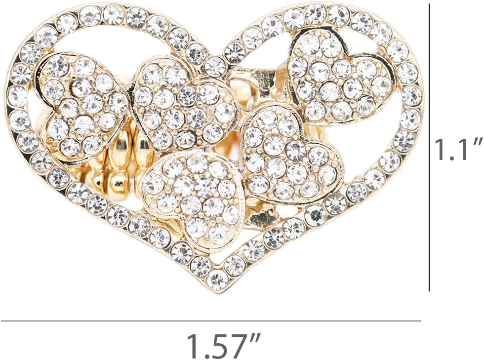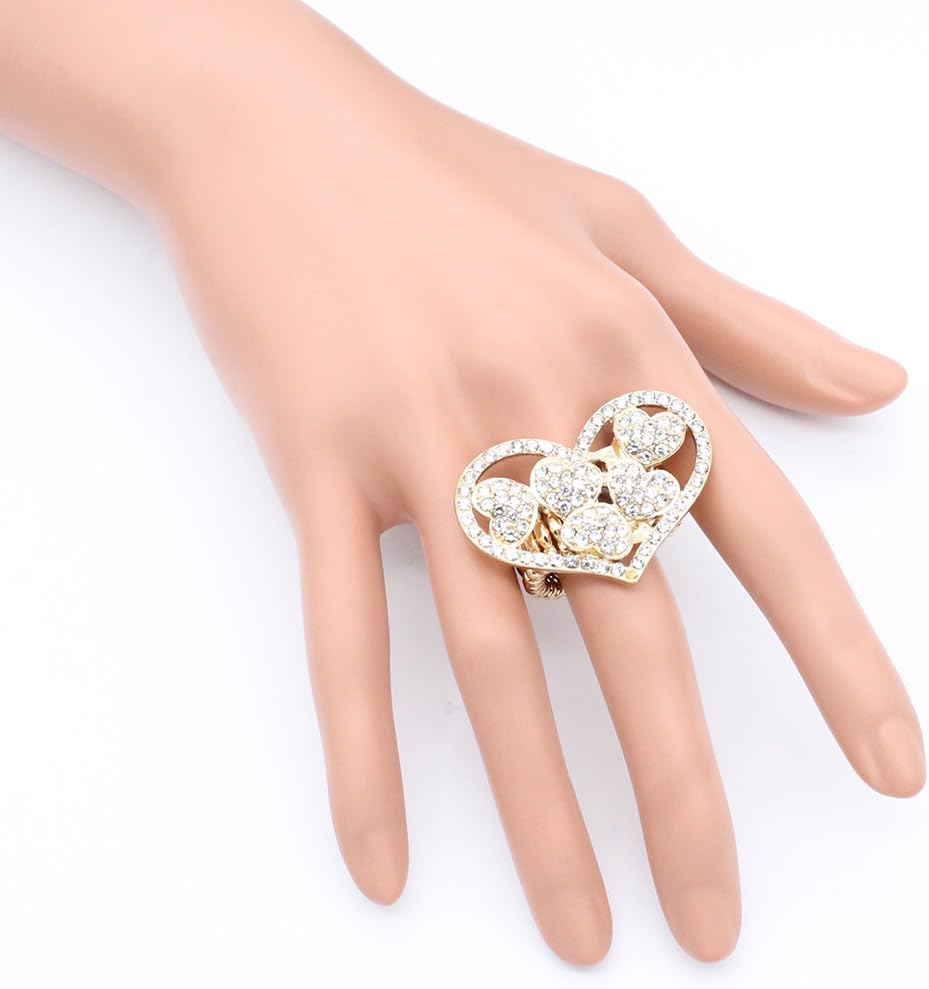 These mesmerizing rings combine the elegance of rhodium/gold tone/jet black plating with the captivating sparkle of clear crystals to showcase a beautifully detailed heart design, Made with stretchable bands, these rings offer a comfortable fit for various finger sizes, ensuring effortless wear and a snug yet flexible feel. They are perfect for adding a touch of whimsy charm to your everyday outfits or special occasions.