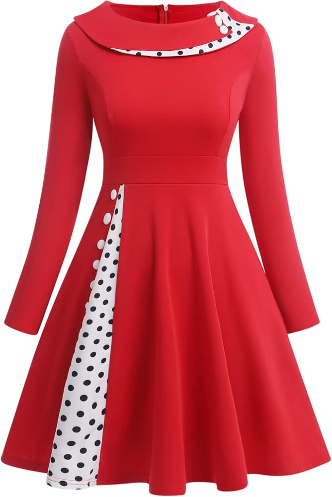 ♥♥ 1950s Vintage Dresses for Women : Long sleeve dress for women wedding guest vintage cocktail 1950s retro rockabilly prom party swing dress, women's vintage 1950s retro rockabilly cocktail party swing dress. 50s polka dot dresses for women 1950s, mesh tulle dress for women graduation dress. Women long sleeve dresses for special occasions, women garden wedding dresses for mother of the bride, summer wedding guest dresses for women fall party wear dress for women formal gowns and evening dresses
