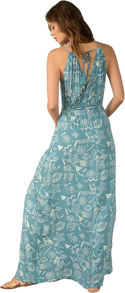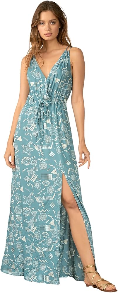 Elan Women's V-Neck Cross-Front Tie-Waist Grecian Maxi Dress. Cover up full length design Tie-Die Style: RYT5427 Shell Print Style: RYP5427