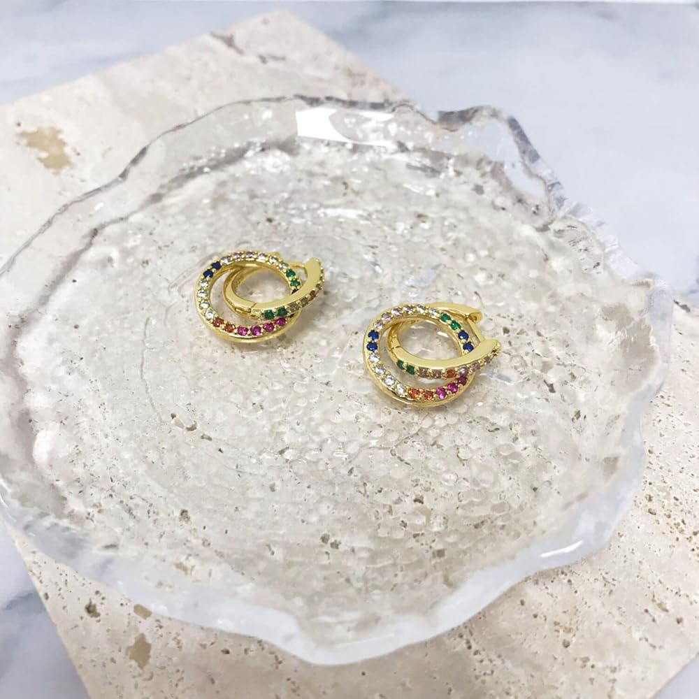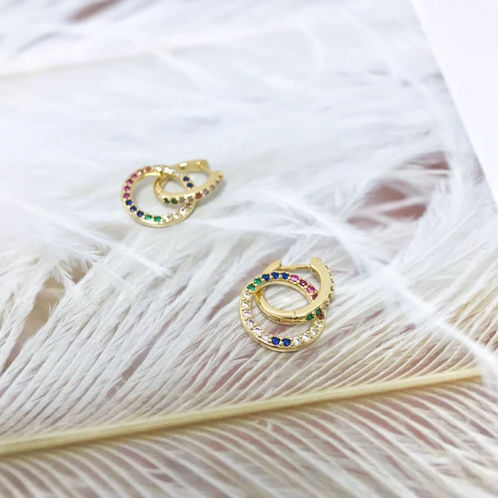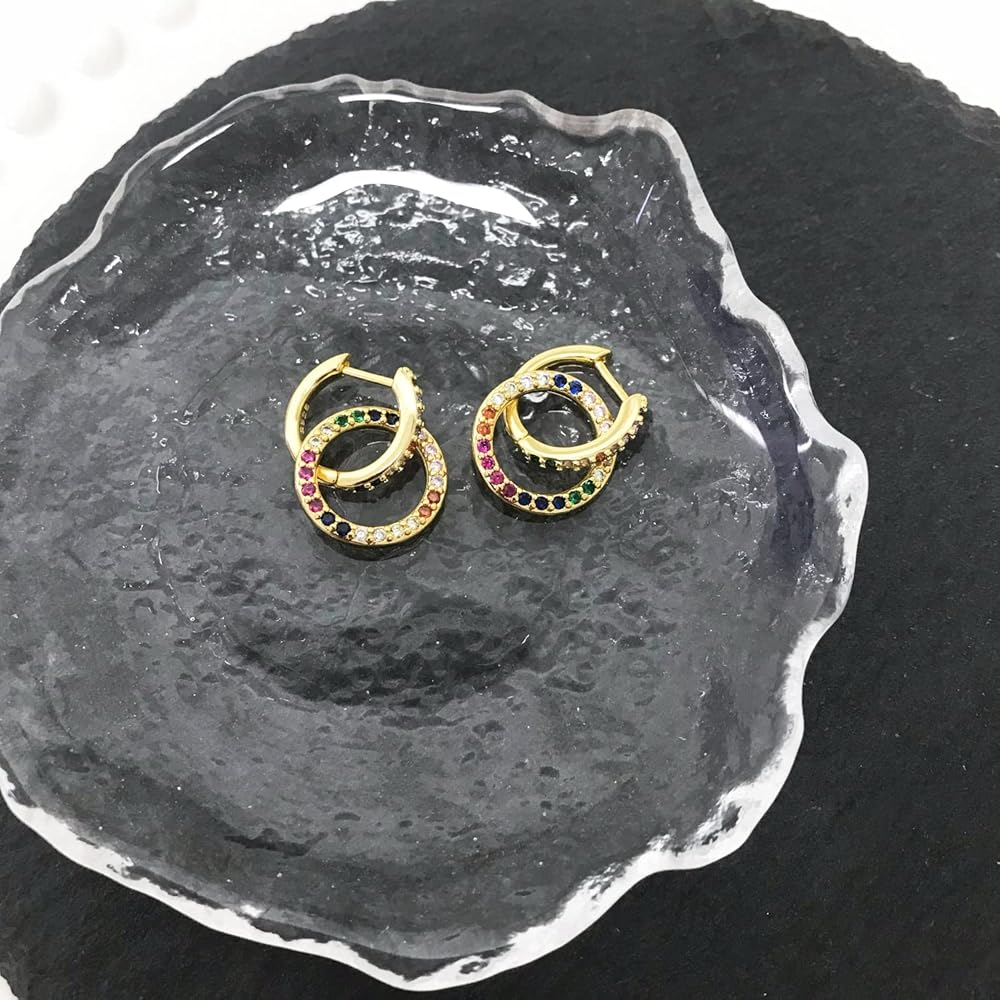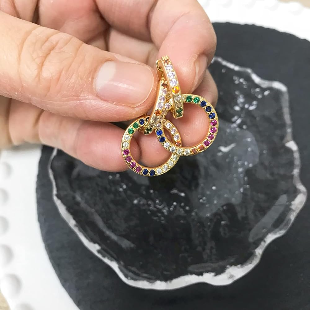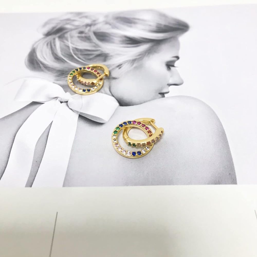 s925 Silver Needle Hollow Circle Full Zircons Embellished Colorful Dangle Huggie Earrings Fashion Unique Geometric Double Rings Hoop Earrings