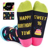 BIRTHDAY SOCKS: These socks are perfect for teen girls. The socks feature birthday gifts, hats, cakes, and other elements on the top, while the bottom is sewn with a hilarious hidden message: “Happy Birthday To Me, It's Official...14 I'm A Teen!”. These socks make for cool gifts for teenage girls.