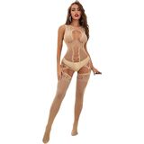Fashion Design: This sexy bodystocking featuring a high keyhole neckline, sheer lace cups, a sheer mesh bodice with a netted center panel, slashed attached garters, a netted mesh and lace back with a cheeky cut bottom, and attached mesh stockings with lace tops. (Panty not included.)