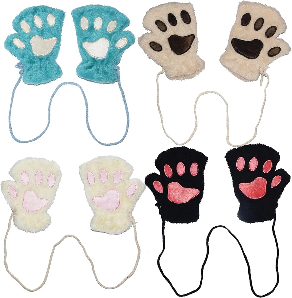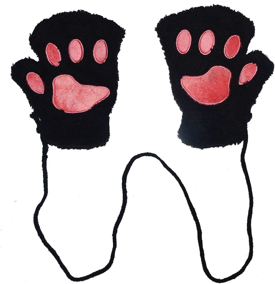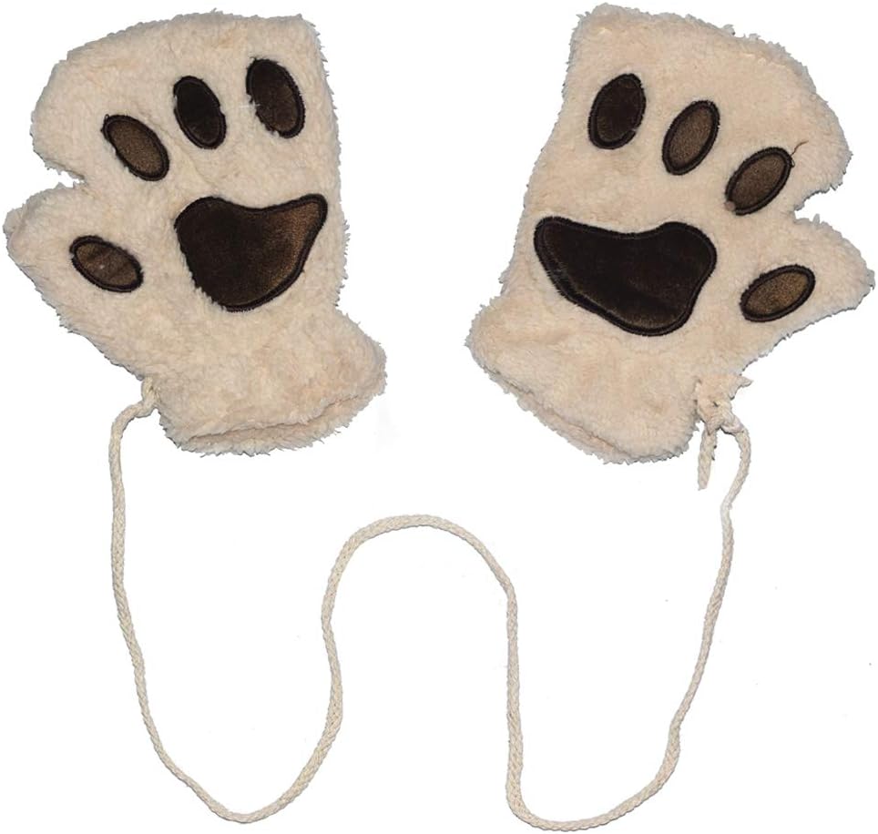Chiclinco Women Fingerless Paw Gloves, Plush Cat Bear Claw Plush Mittens Half Finger Glove for Teens Kids