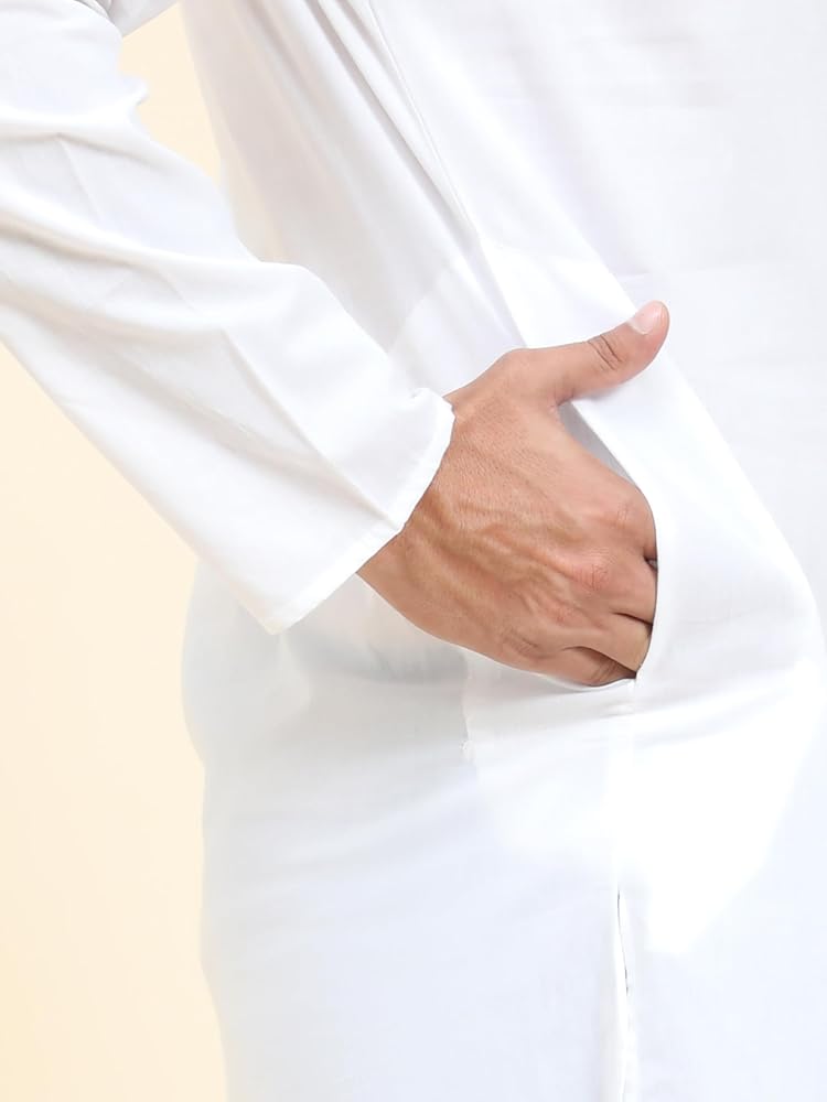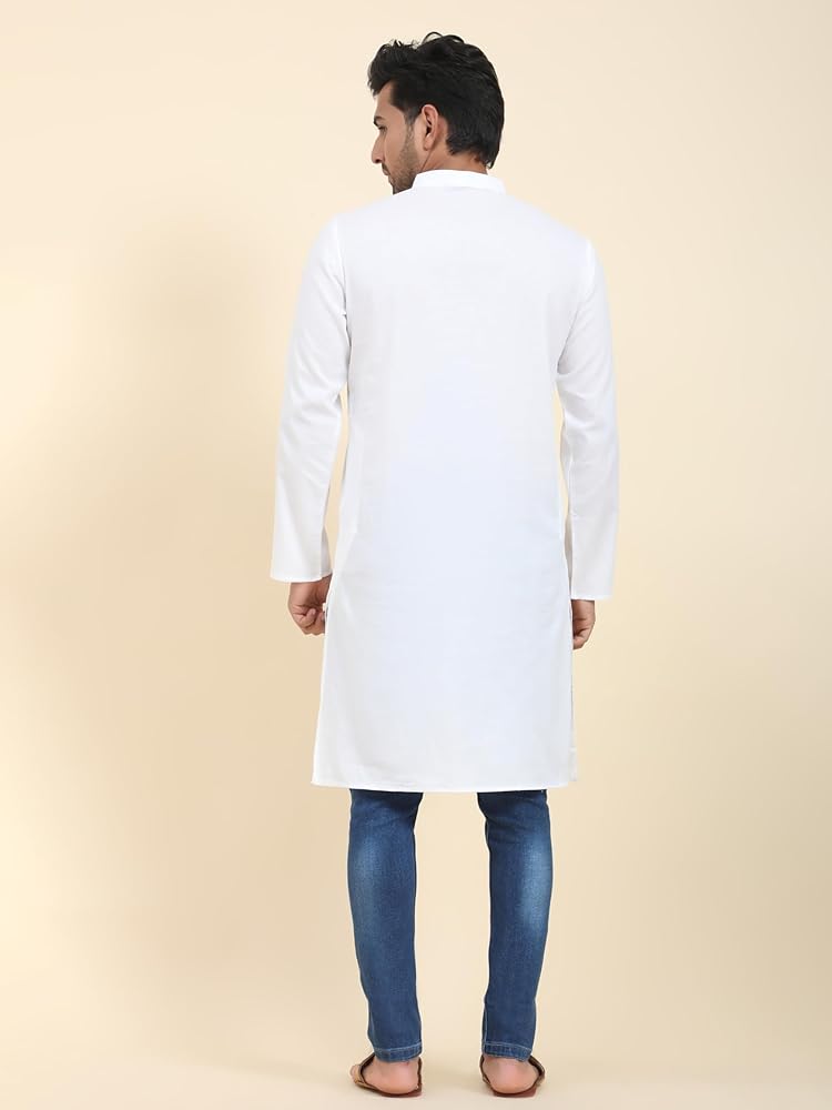 FEATURES: This kurta shirt features long sleeves, round neck, mandarin collar, knee length and 2 side pockets