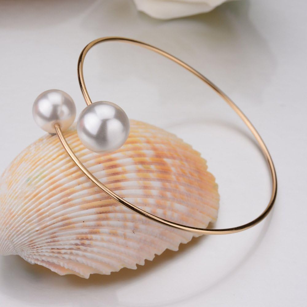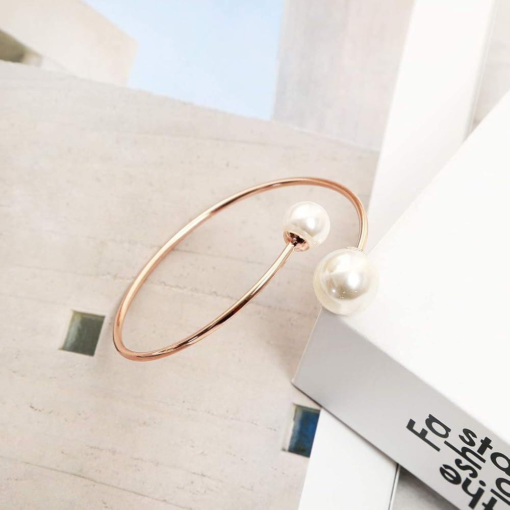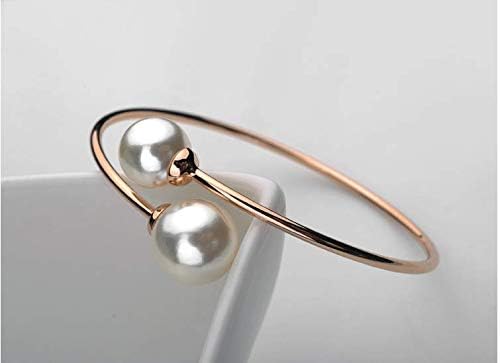 Rose Gold Shell Pearl Bangle for Women. Inner Diameter: 6.25cm, Adjustable to fit most wrists