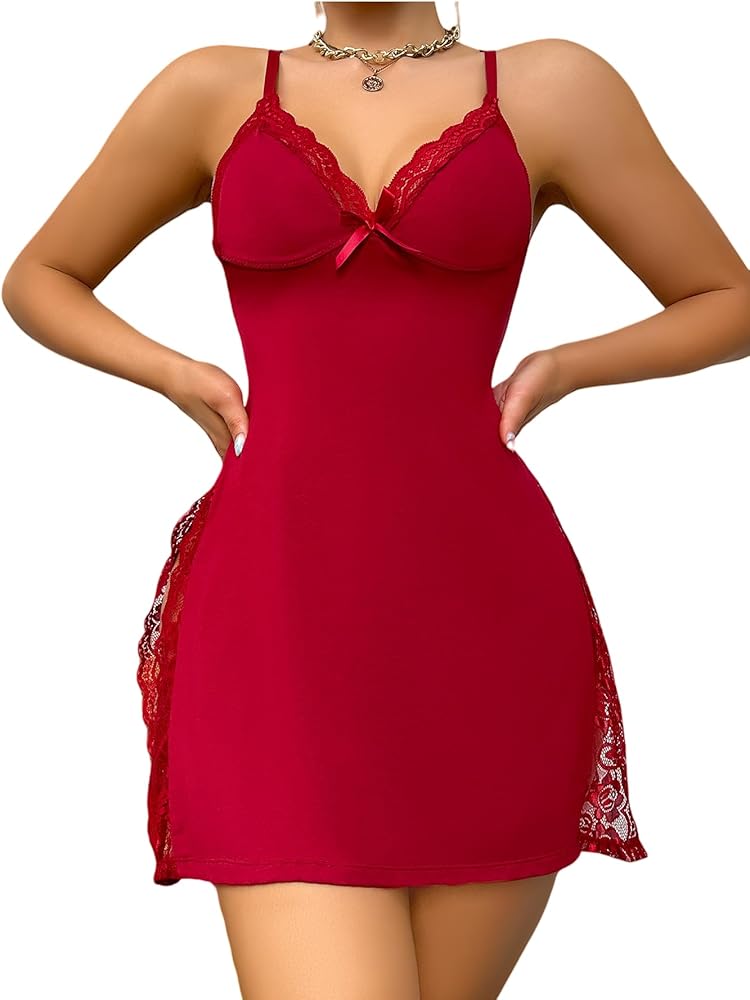 • ★ Unique Design:Lace chemise is design of dual side slits will perfect show your sexy leg curve.V-neck design makes you look very slim, sets off the shoulder and neck lines, shows your sexy butterfly bones, makes you very sexy, and deeply attracts the attention of your lover