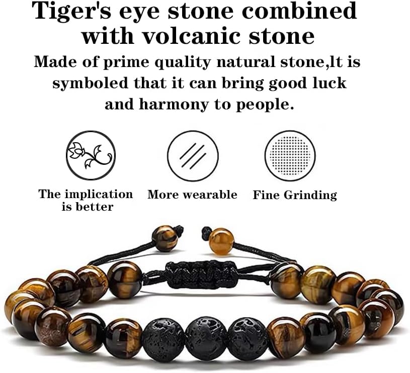 【PERFECT GIFT】Tiger eye is a powerful stone to release fear and anxiety,This anxiety relief bracelet is a perfect gift for anyone and any occasions, like Father's Day, Christmas, Valentine Day, Birthday, Anniversary, Thanksgiving, Graduation or gift for boyfriend, husband, Dad and family members
