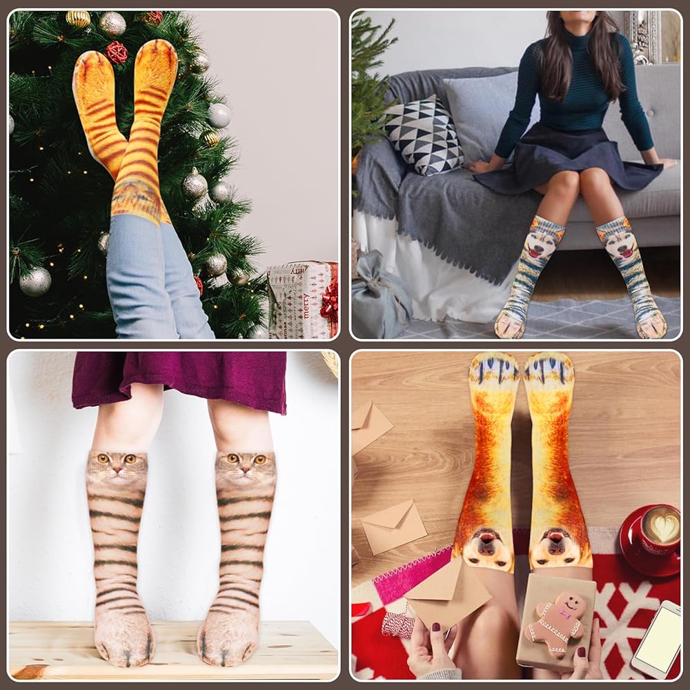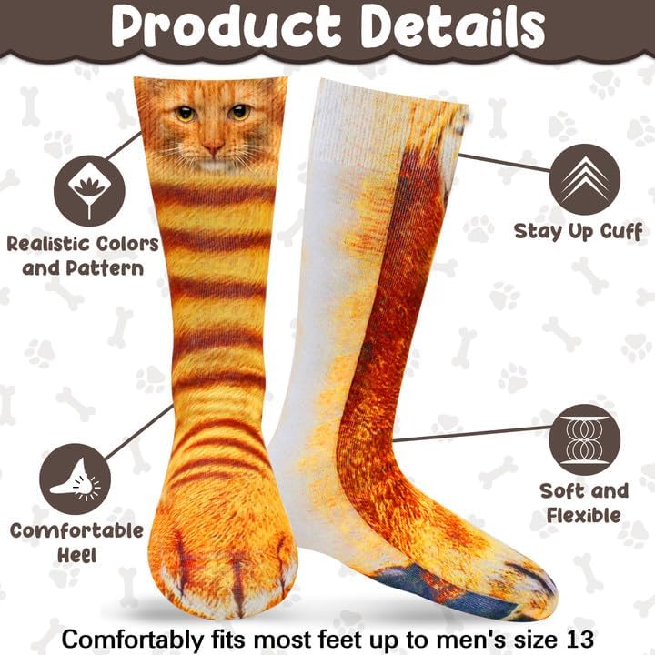 【Perfect Funny Gift】Novelty Funky Socks are great gifts for cat lovers, stocking stuffers, or your family and friends with a sense of humor. Ideal for animal cosplay party, white elephant party, fancy dress party, birthday party, Halloween, Christmas, and more, the perfect animal costumes to impress them with these unique crazy socks.