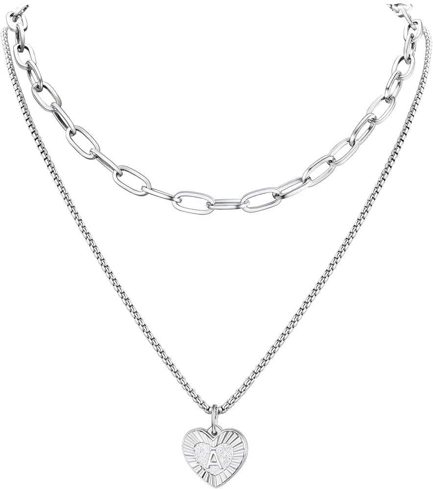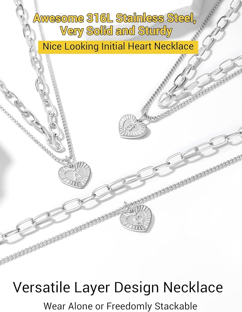♦ Size ♦: The Necklace Comes with Two Separated Chain Necklace, Paperclip Necklace is 14"+2", and Heart Necklace with Initial is 20"+2", Perfect Adjustable Size and Comfort Fit.